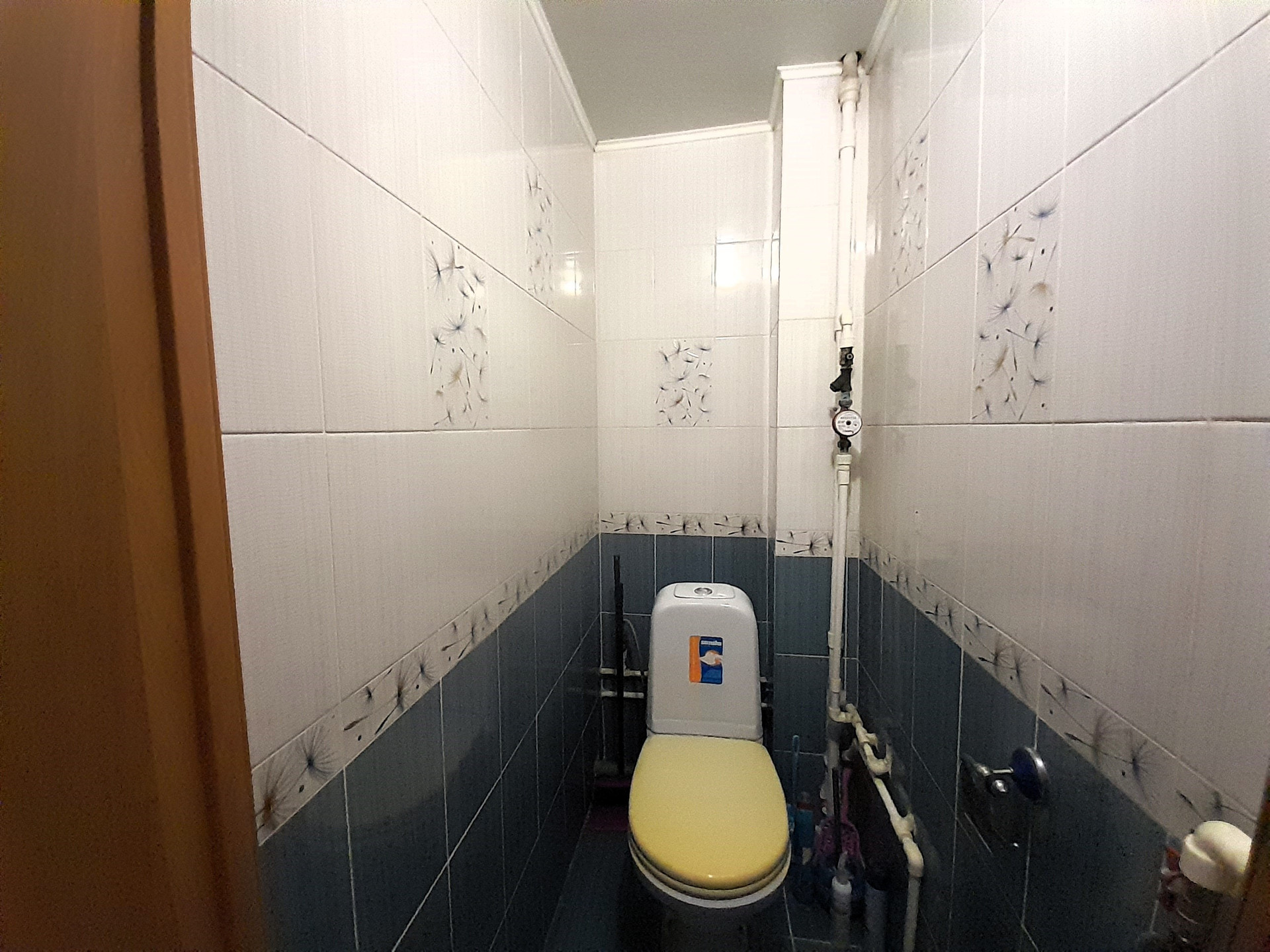 Санузел раздельный, трубы пластиковые, имеются приборы учета, стены выложены кафелем.