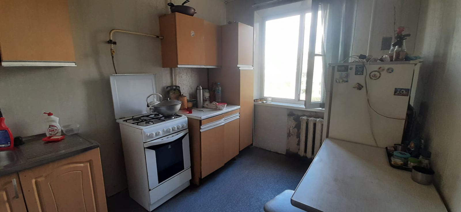 Квартира в состоянии "под ремонт". Установлено 3 пластиковых окна, балкон с отделкой евровагонкой, остекление пластик. Расположение окон восток-запад. Тамбур на 2 квартиры.