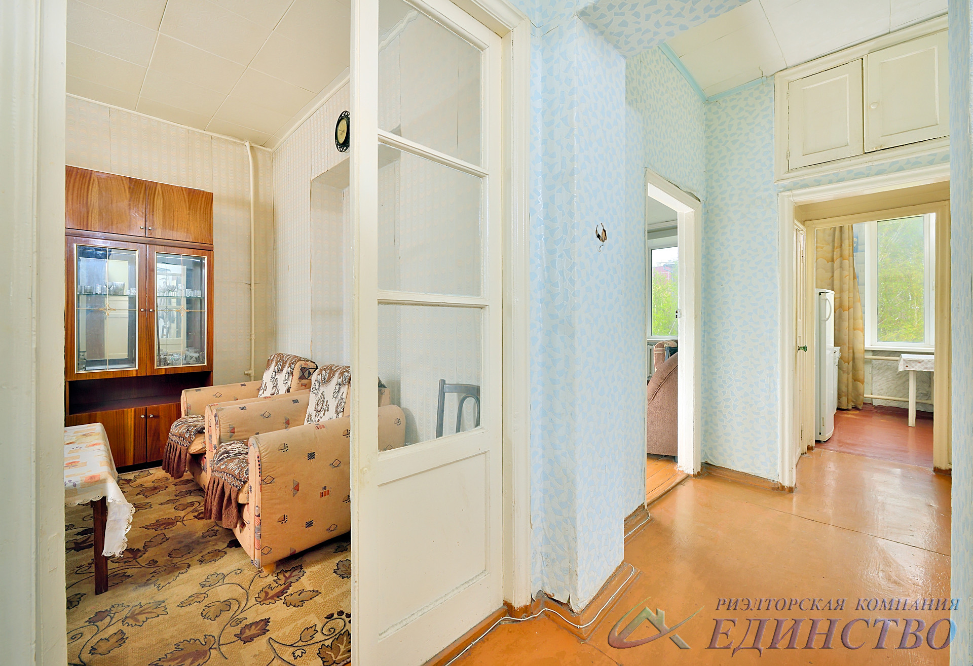 Жилая площадь 51 кв.м: три большие комнаты 13.6 м., 18,6 м. и 18,8 м.