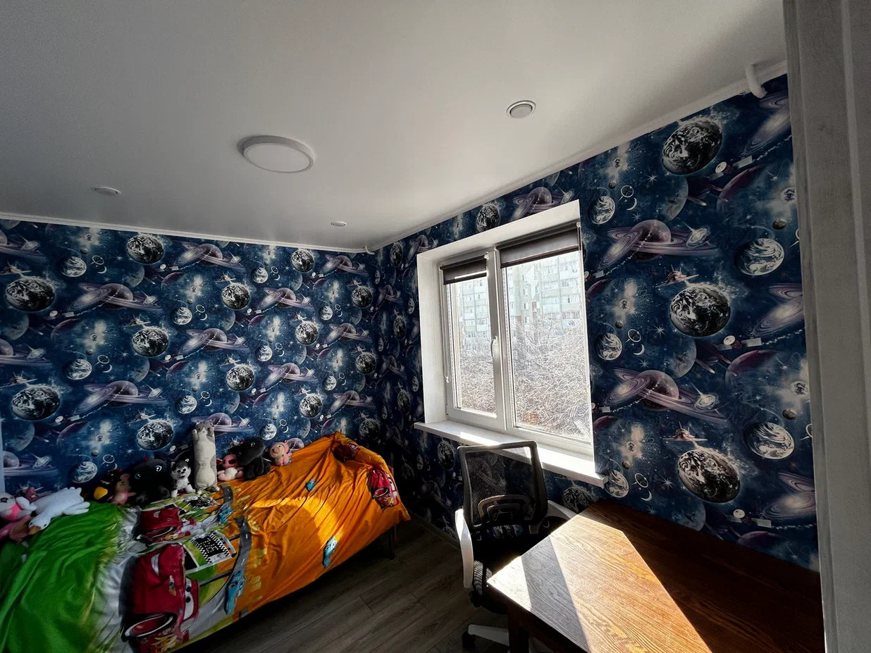 В квартире в 2023 году сделан ремонт.  Во всей квартире натяжные потолки и точечное декоративное освещение. Все окна новые пластиковые от 2023 года. Трубы пластиковые. Полы выровнены, уложен качественный ламинат. Новые межкомнатные двери, обои в светлых тонах. Санузел раздельный, сантехника вся новая. ПРОВОДКА полностью заменена на медную!
