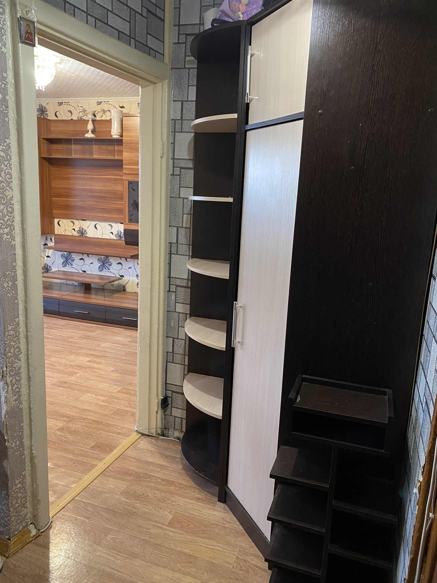 ✔️Наличие в коридоре просторной гардеробной, позволит организовать систему хранения вещей. Остается вместительный небольшой шкаф, в гостиной остается стенка.