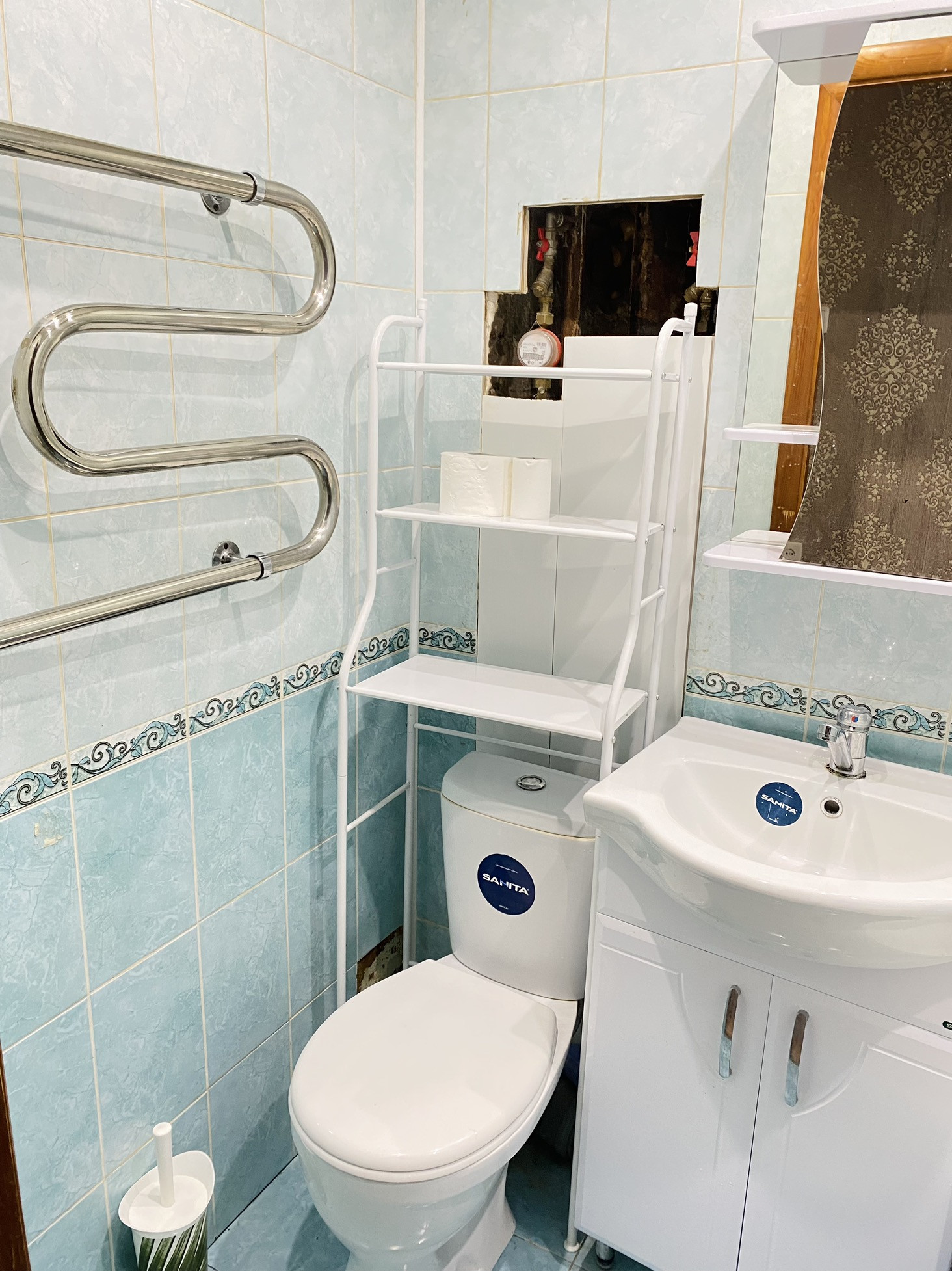 ✔️Совмещённый санузел, поставлены водомеры. Остается раковина с зеркалом.