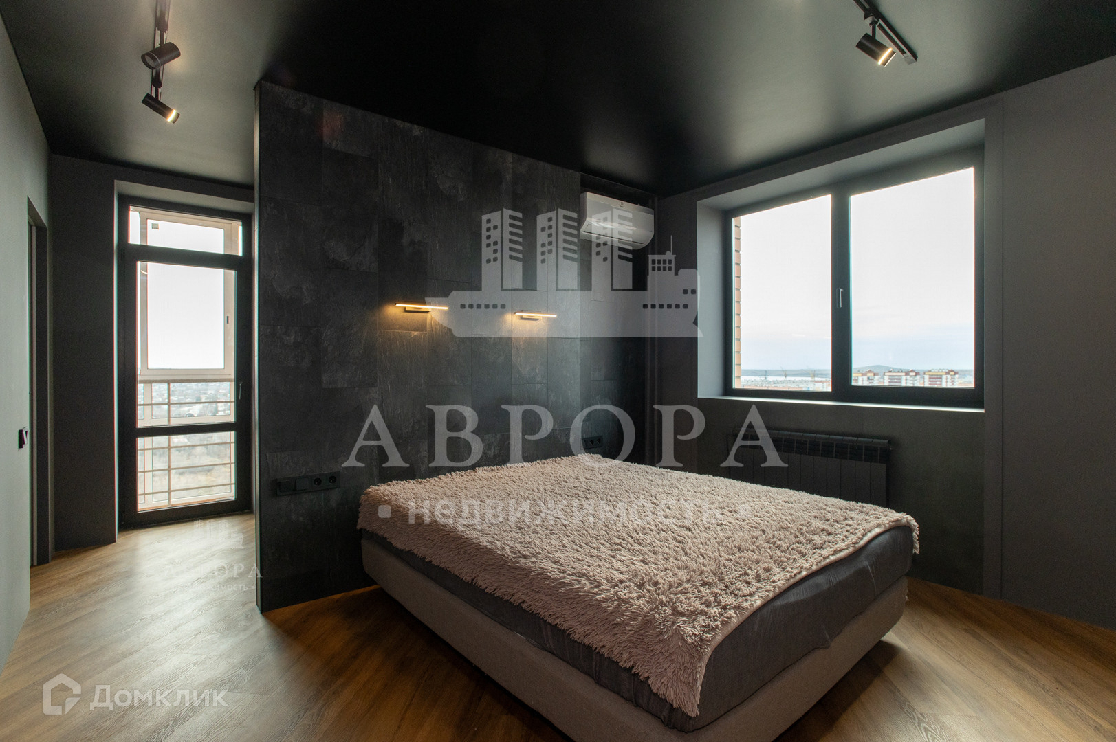- Спальная: кровать Оrmаtеk, подоконник из керамогранита, прикроватные светильники.