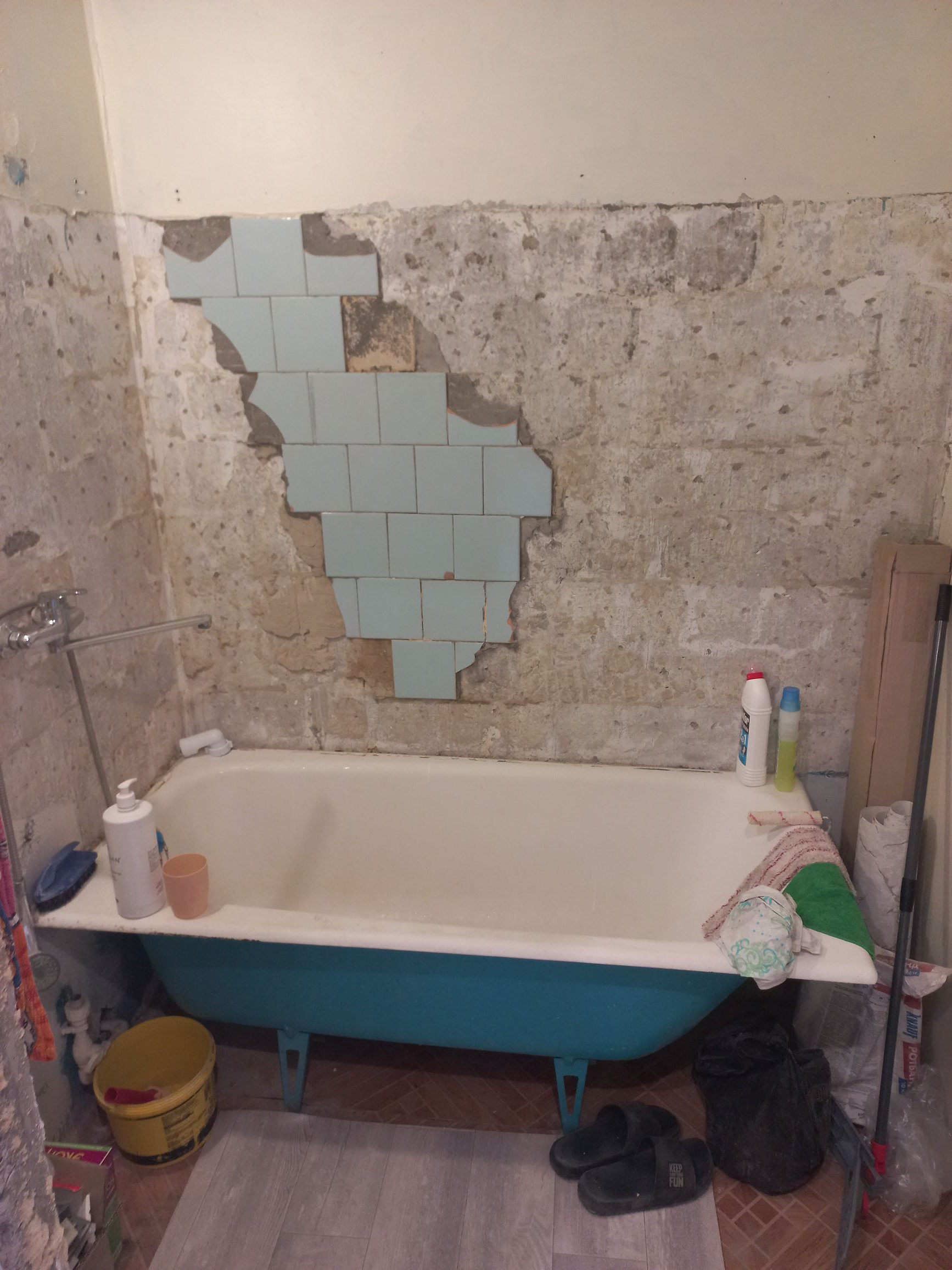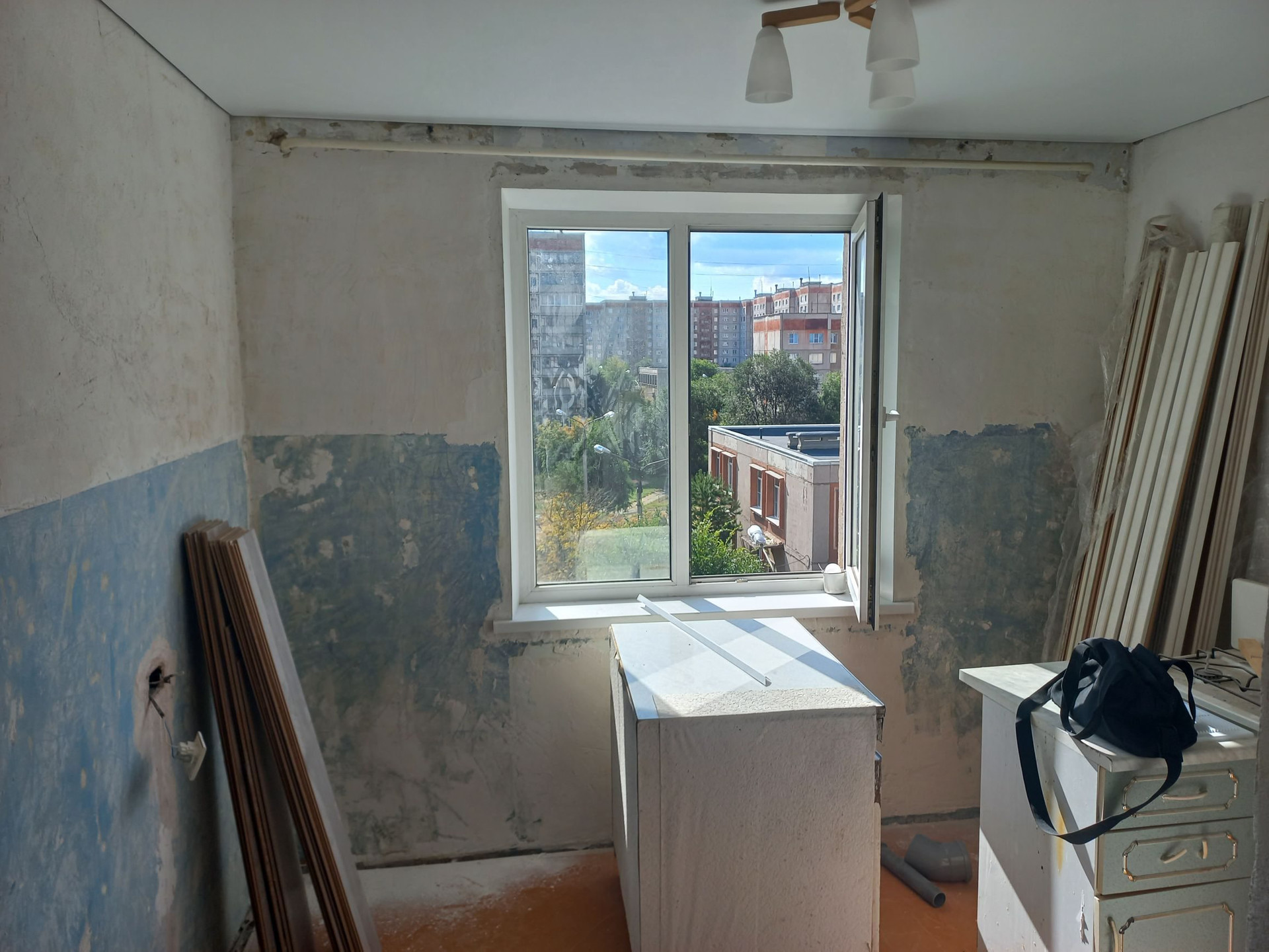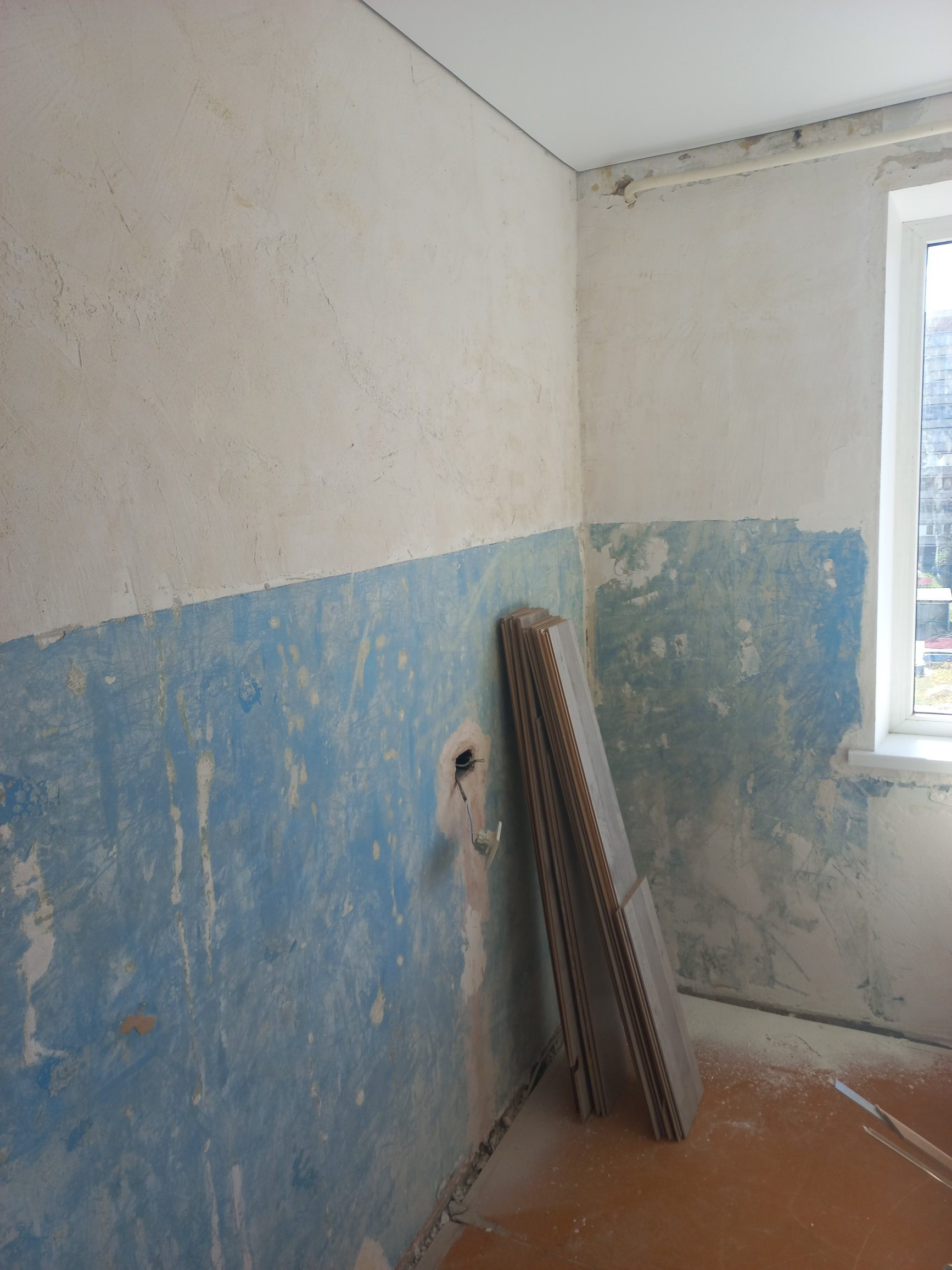Санузел и кухня подготовлена для отделки. Грязная работа позади.