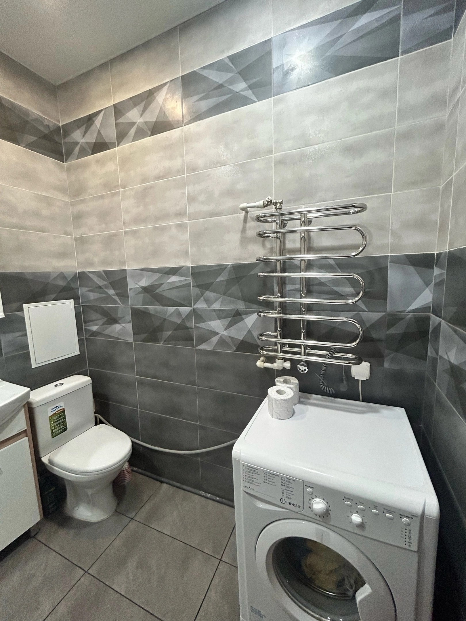 - в ванной комнате проведён водяной тёплый пол и подключён змеевик к отоплению.