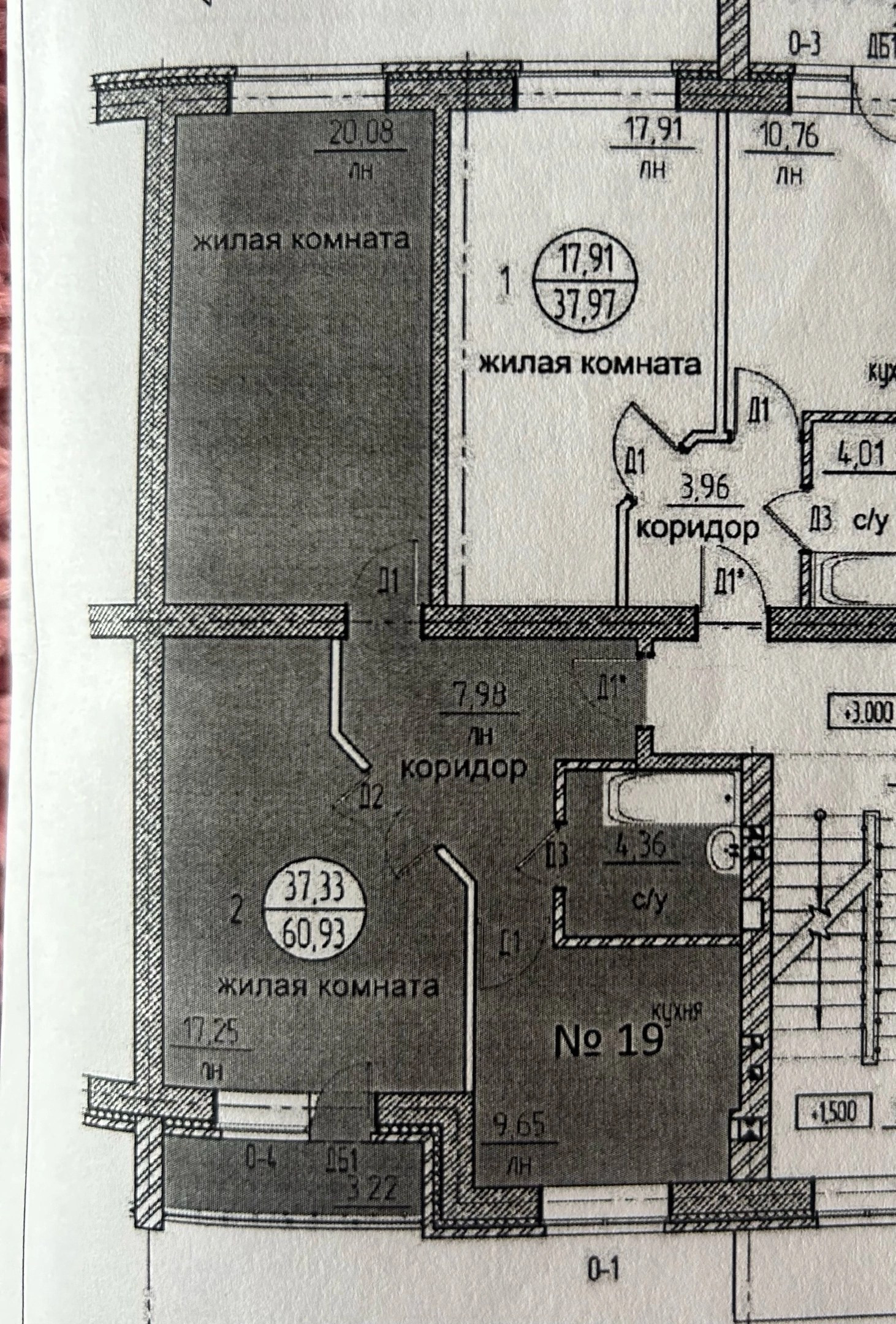 Жилая площадь 37.33 м2
