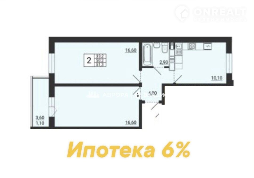 Общая площадь 51.3 м2