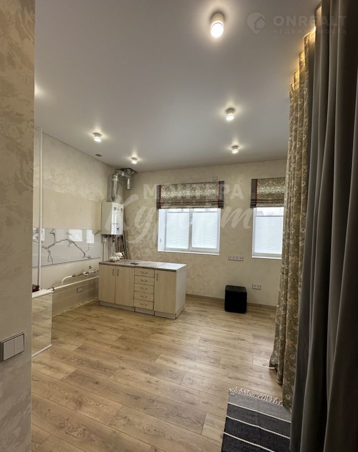 Газовый котел, теплые полы по всему периметру квартиры, на полу ламинат и керамогранит, стены выравнены, наклеены дорогие обои, подоконники - керамогранит, в квартире много светильников и розеток.