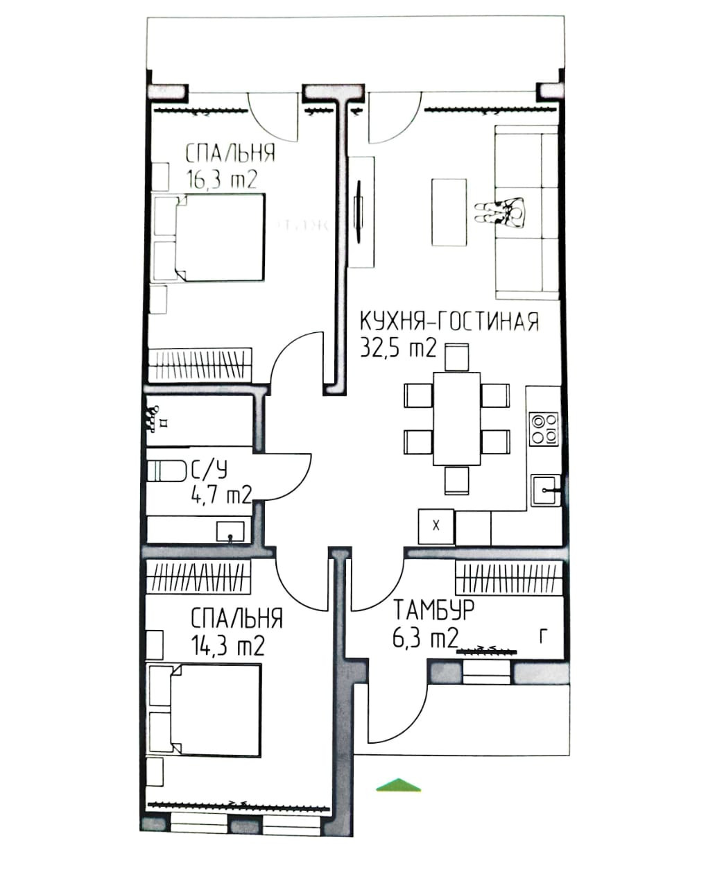 ✔ Это улучшенная версия трехкомнатной квартиры. Площадь дома - 78,7 м2, площадь земельного участка 1,75 сотка. Планировка подразумевает просторную гостиную - кухню с выходом на Ваш участок, 2 спальни, сан. узел, тамбур.