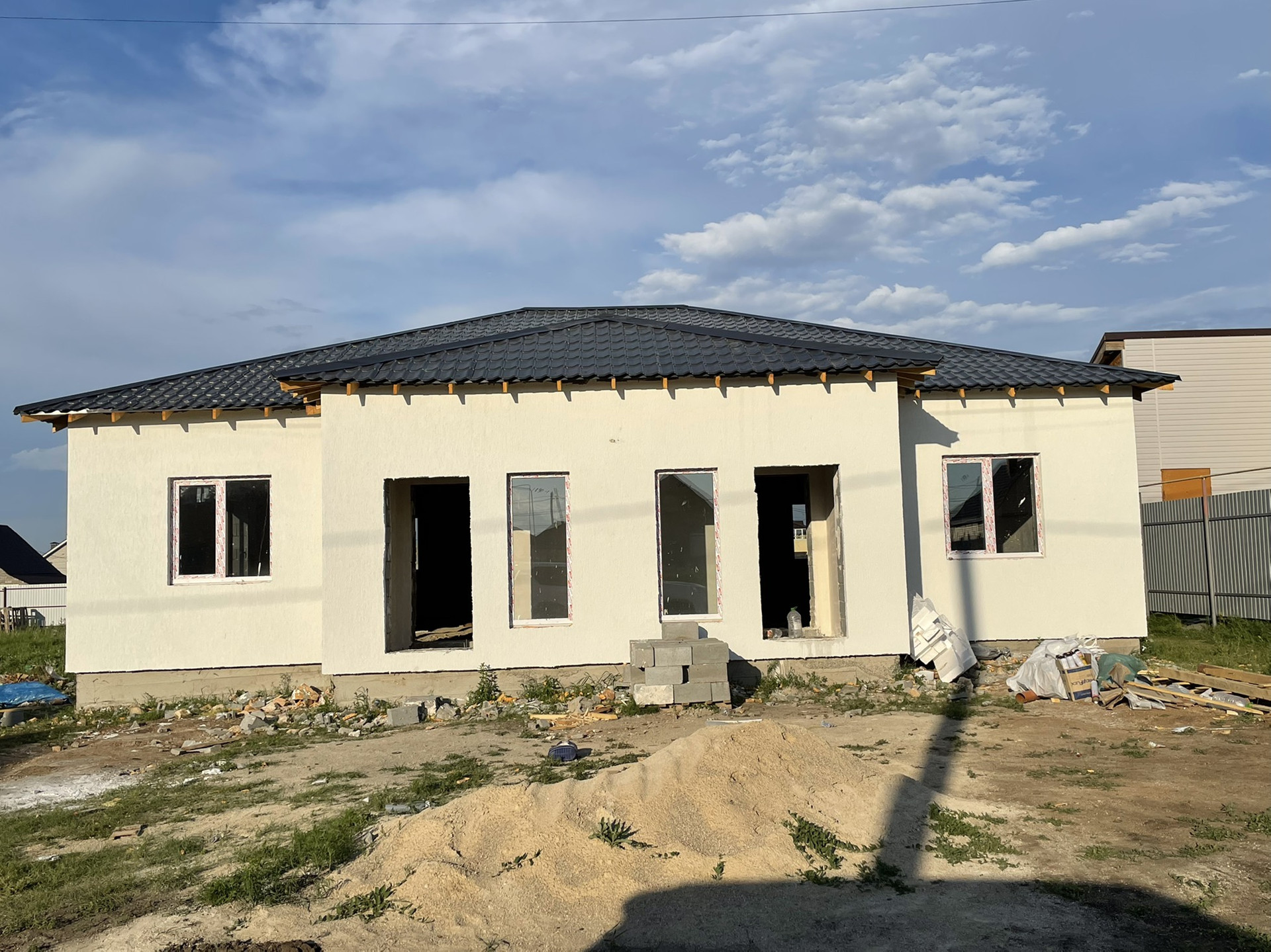 Западный 2. (Нежный) Продам таунхаус на два хозяина, материалы стены шлакоблок на 400, фасадный Утеплитель на 100, декоративная штукатурка Церезит. Крыша металлочерепица, Газ, электричество, канализация переливная система. Вода скважина. Отделка под чистовую тёплый пол по всему дому, хорошая входная дверь, все коммуникации заведены и разведены по дому. По проекту две спальни и кухня гостиная. В продаже обе половины, подходит под ипотеку, поможем реализовать Вашу недвижимость.