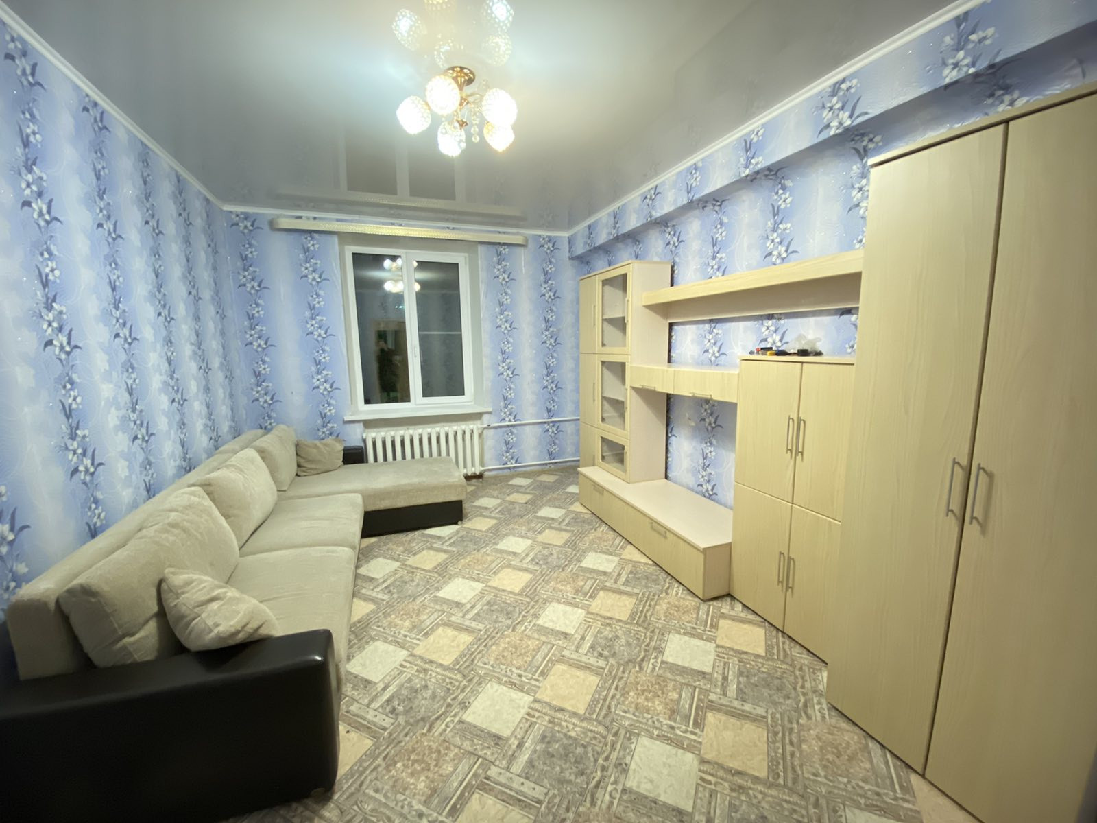 Квартира на 1 этаже, окна высоко, выходят во двор. Во дворе детская площадка, всегда есть парковочные места. В квартире поменяна электрика, свежая сантехника. Оплата 12000 + свет, вода по счетчикам. Оплату берём на месяц вперёд.