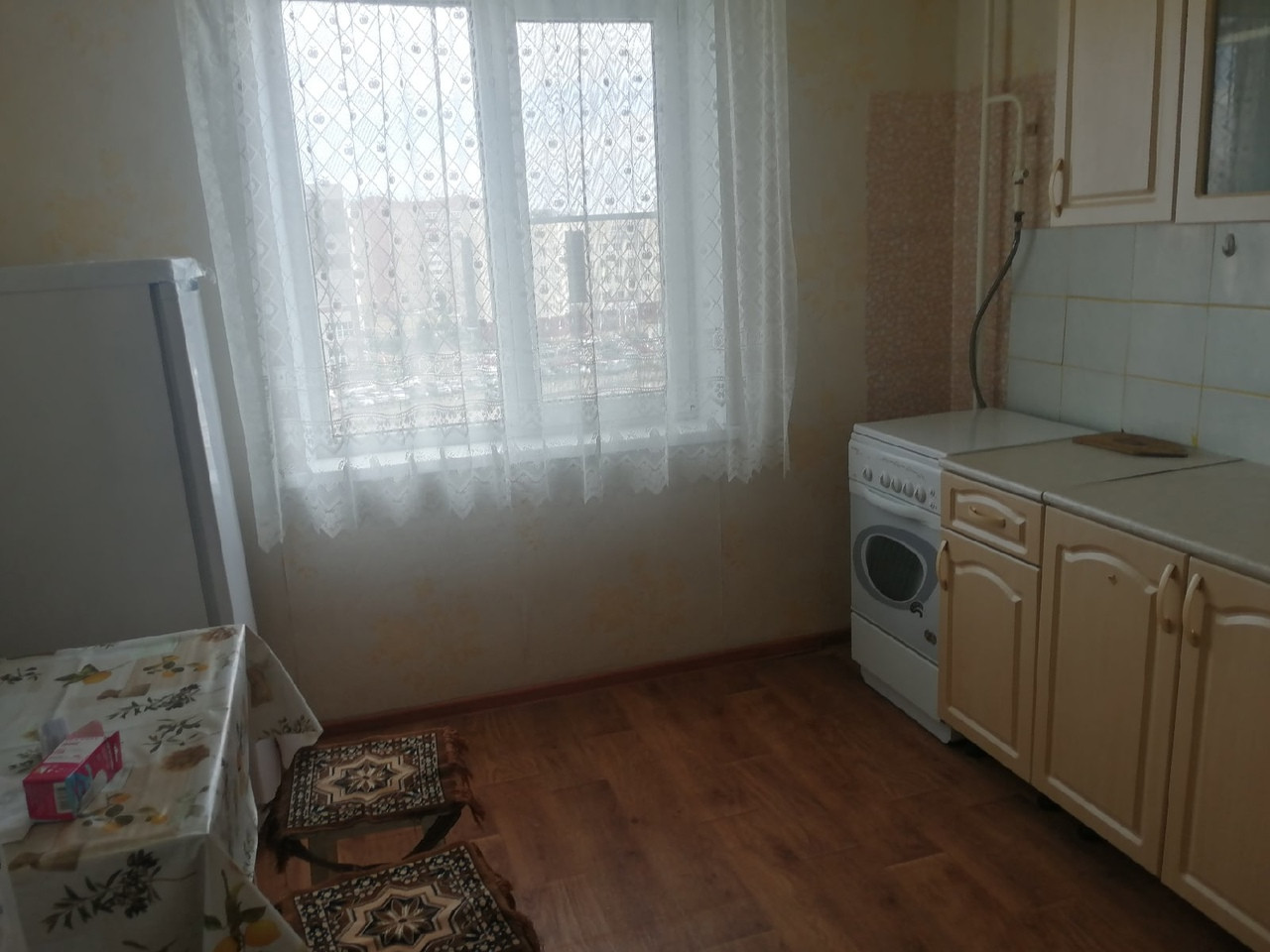 Квартира в хорошем состоянии, есть все для комфортного проживая, из мебели: (диван, кресло, шкаф, столы, стулья); из техники: (холодильник, стиральная машинка, газовая плита).