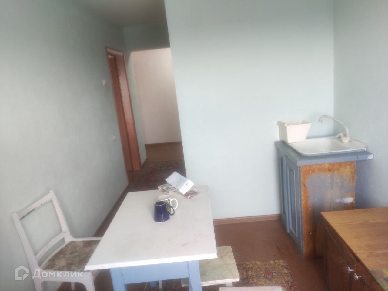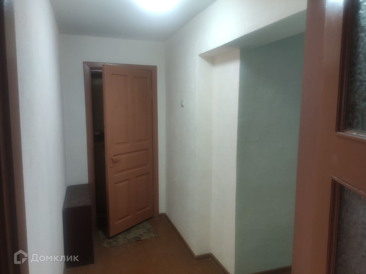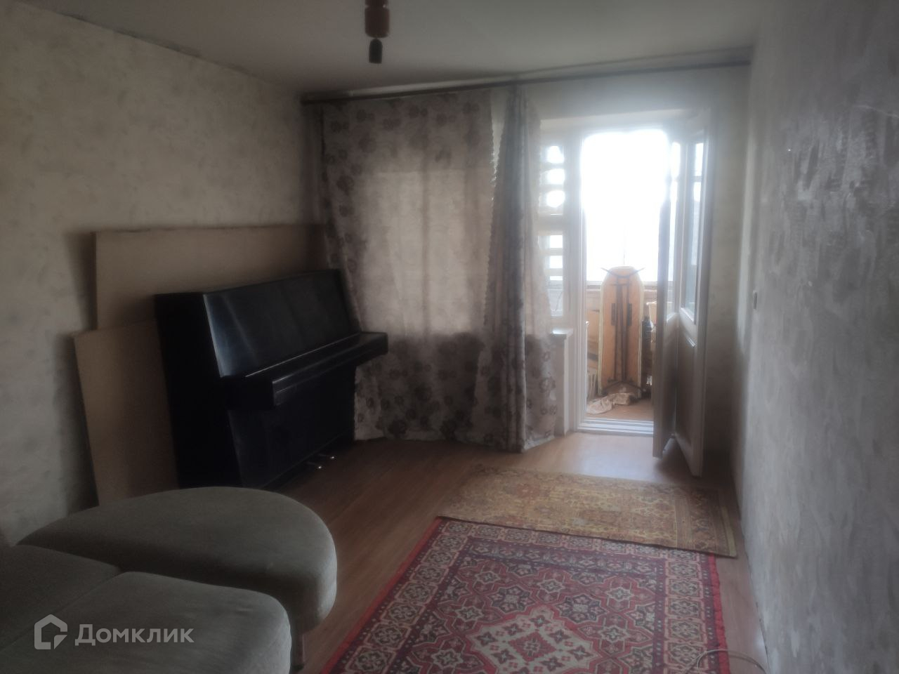 На полу доска, входная дверь железная, балконов - 1, лоджий - 1, окна выходят во двор и на улицу.
