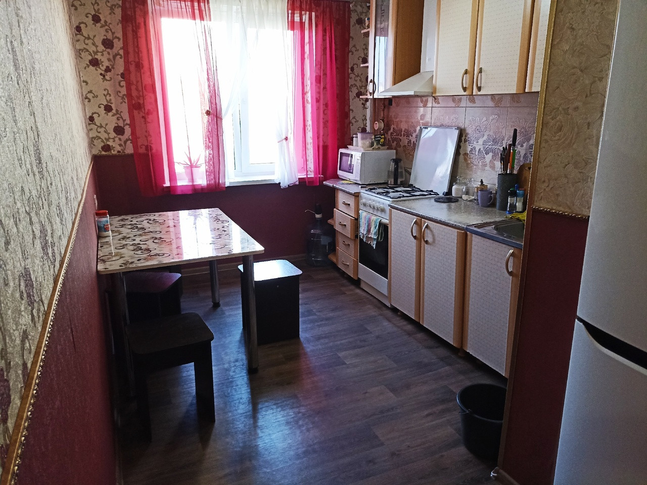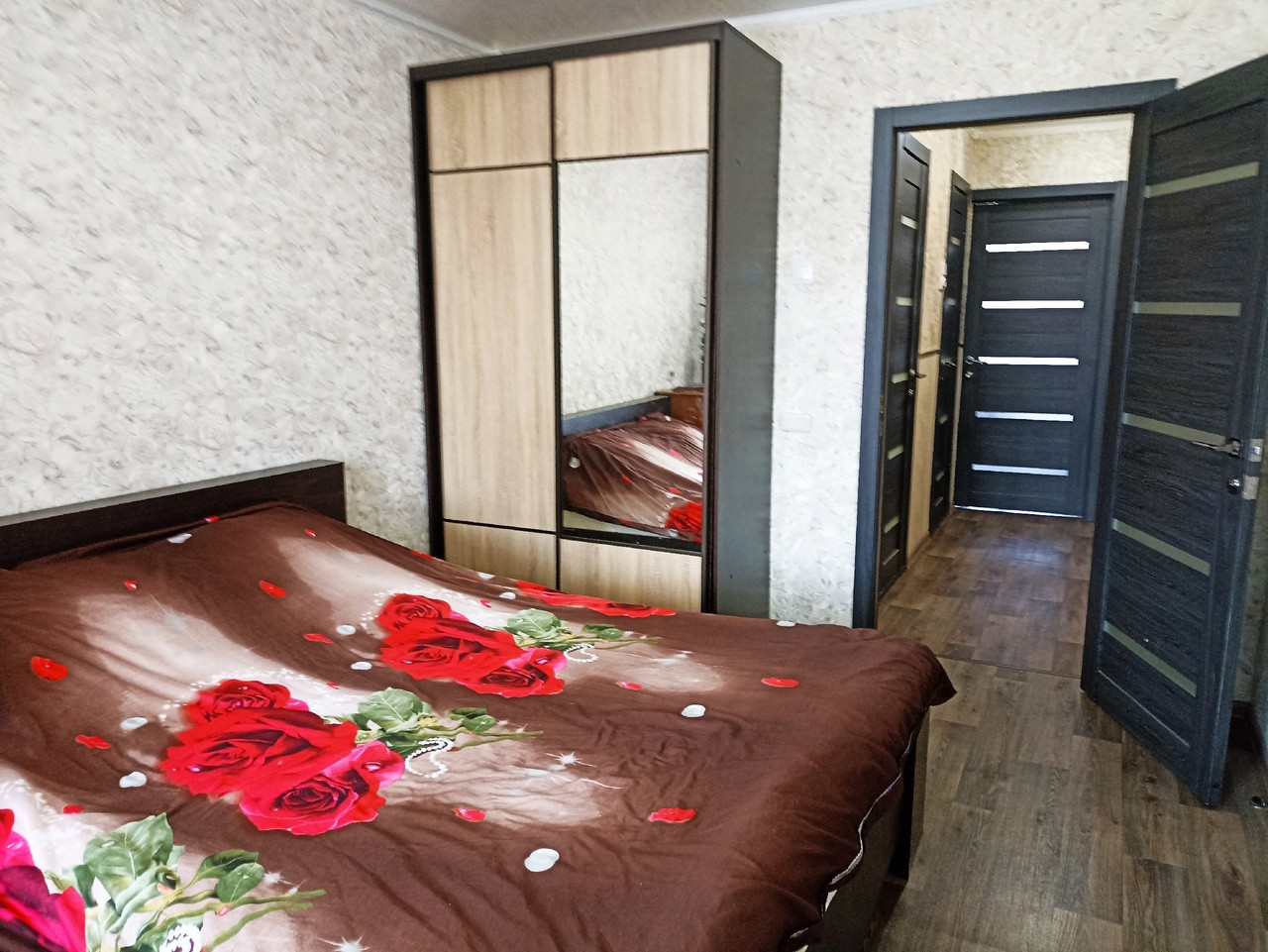 Квартира в отличном состоянии с необходимой мебелью:угловой диван, большая кровать, два шкафа-купе, кухонный гарнитур, кухонный стол, прихожая.