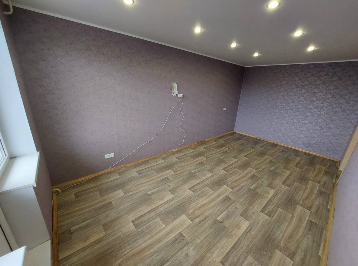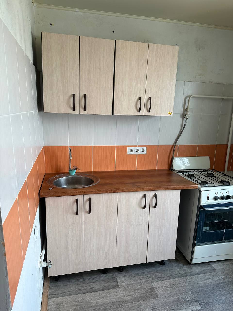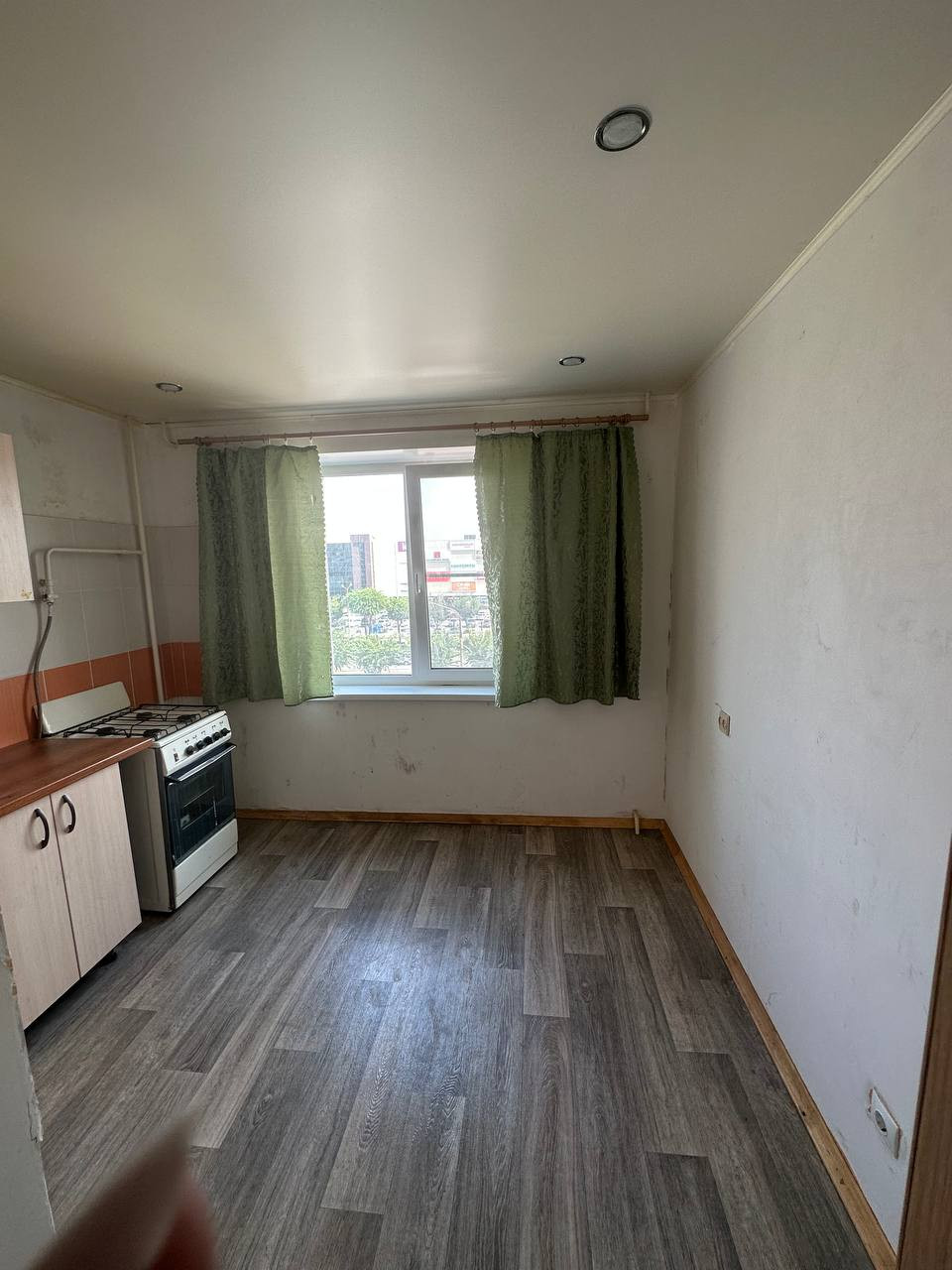 В квартире имеется только кухонный гарнитур с плитой и большой шкаф купе. Можно жить с детьми.