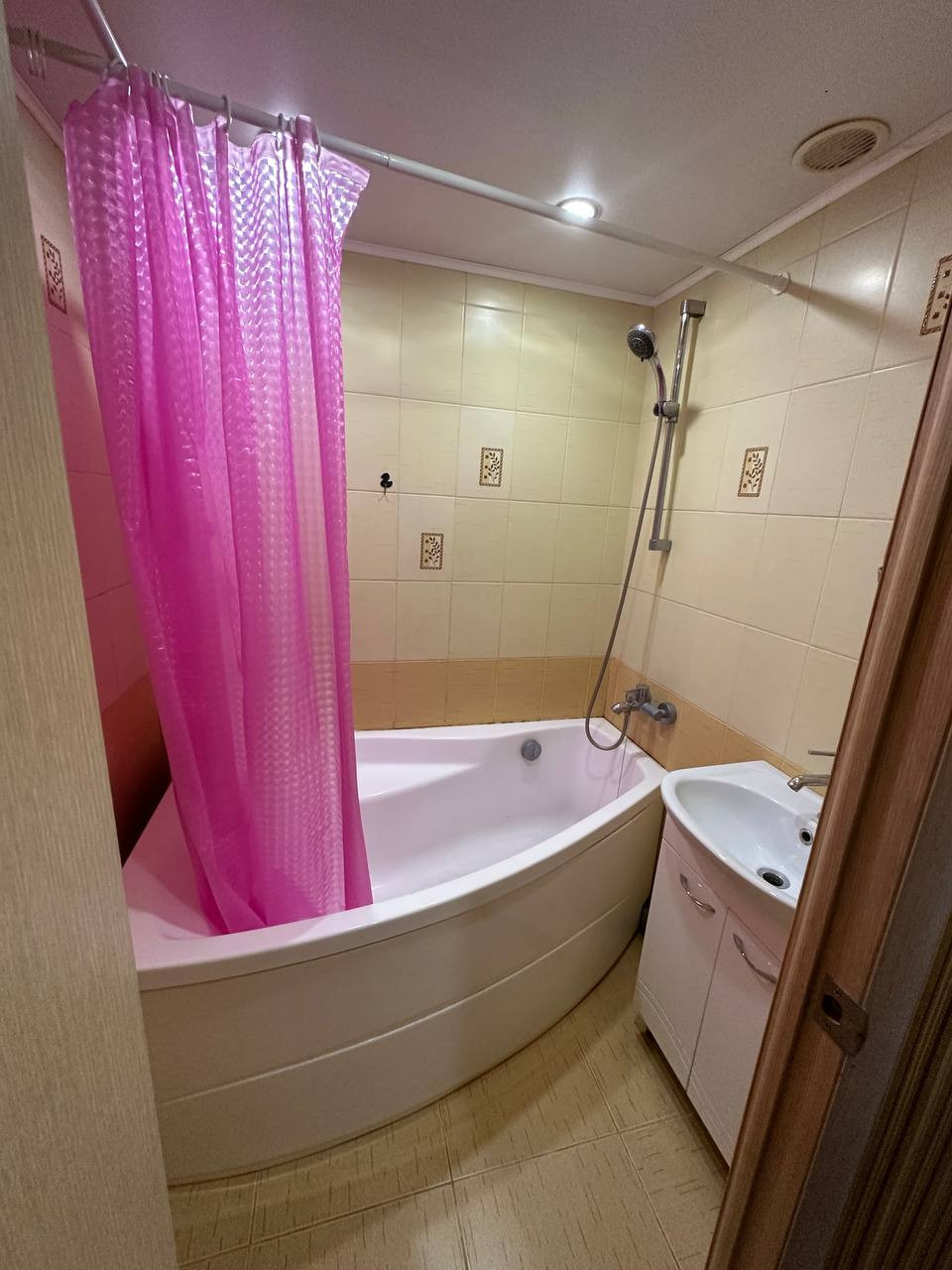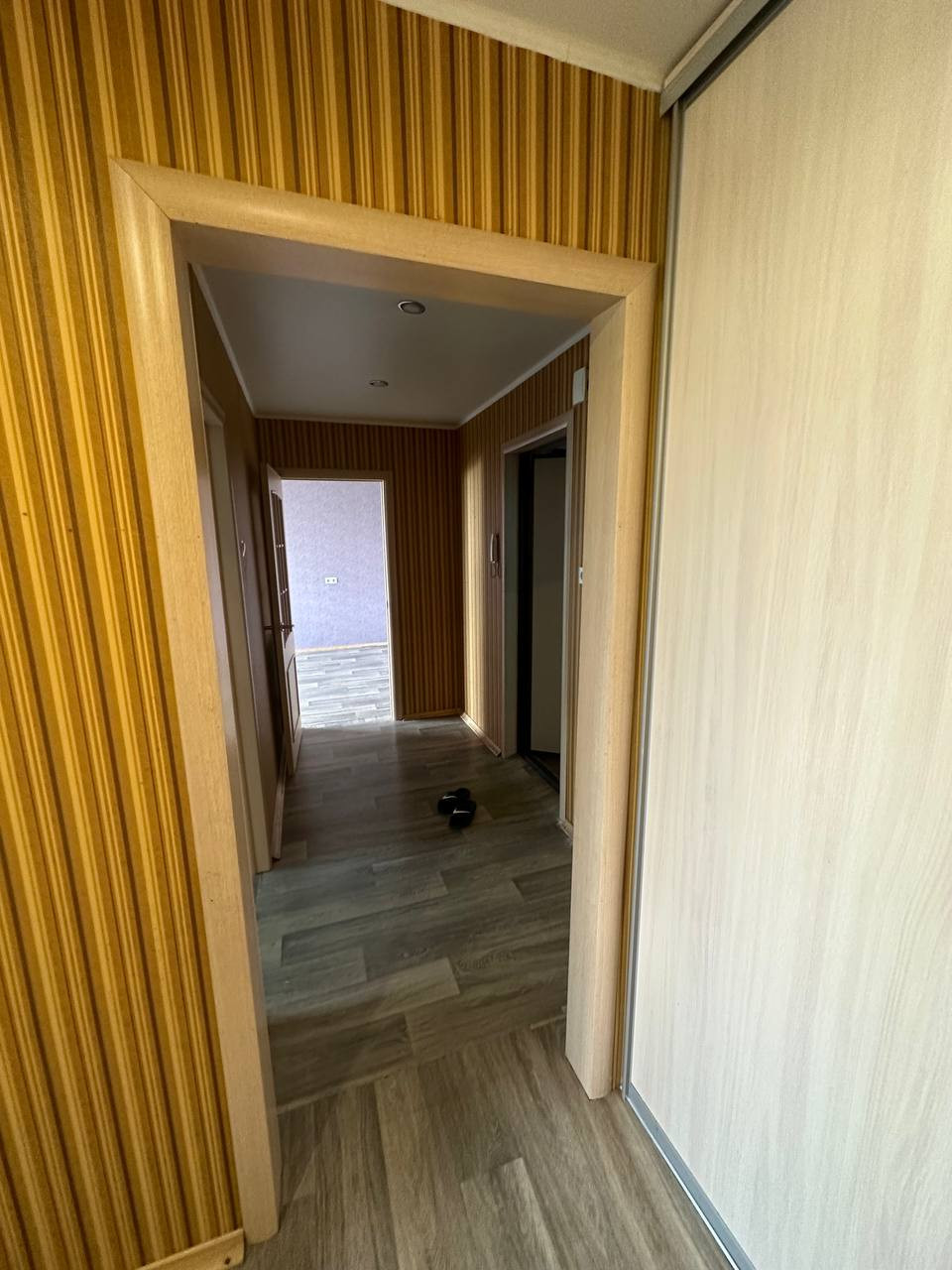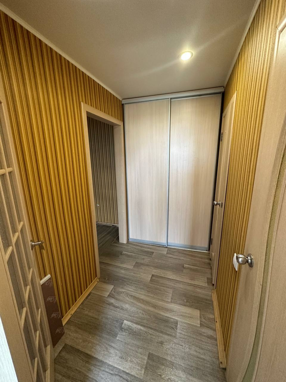 В квартире имеется только кухонный гарнитур с плитой и большой шкаф купе. Можно жить с детьми.