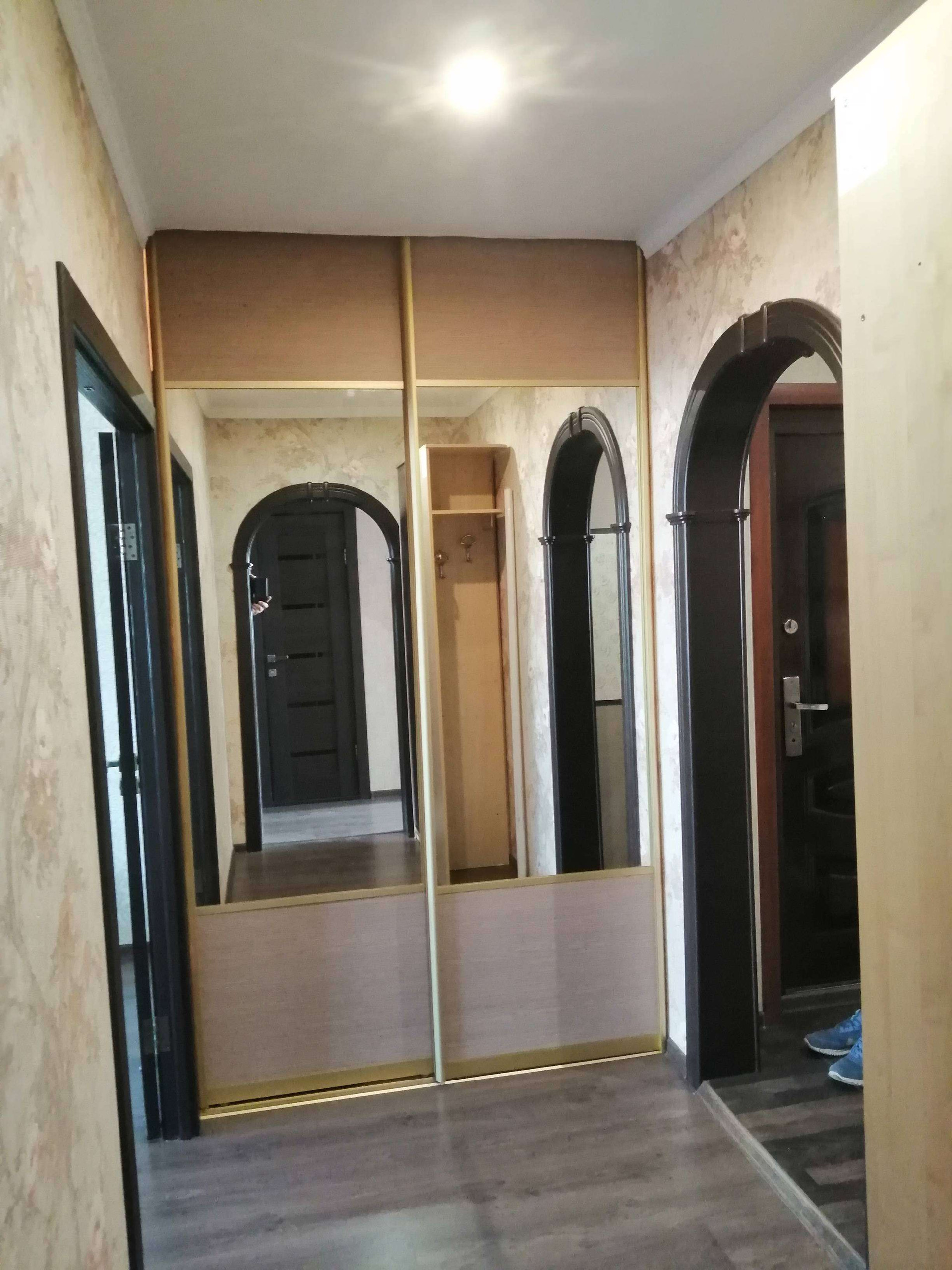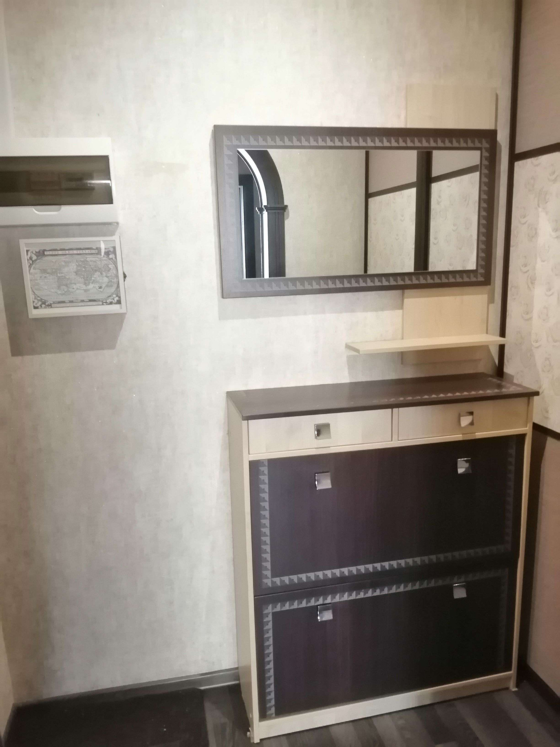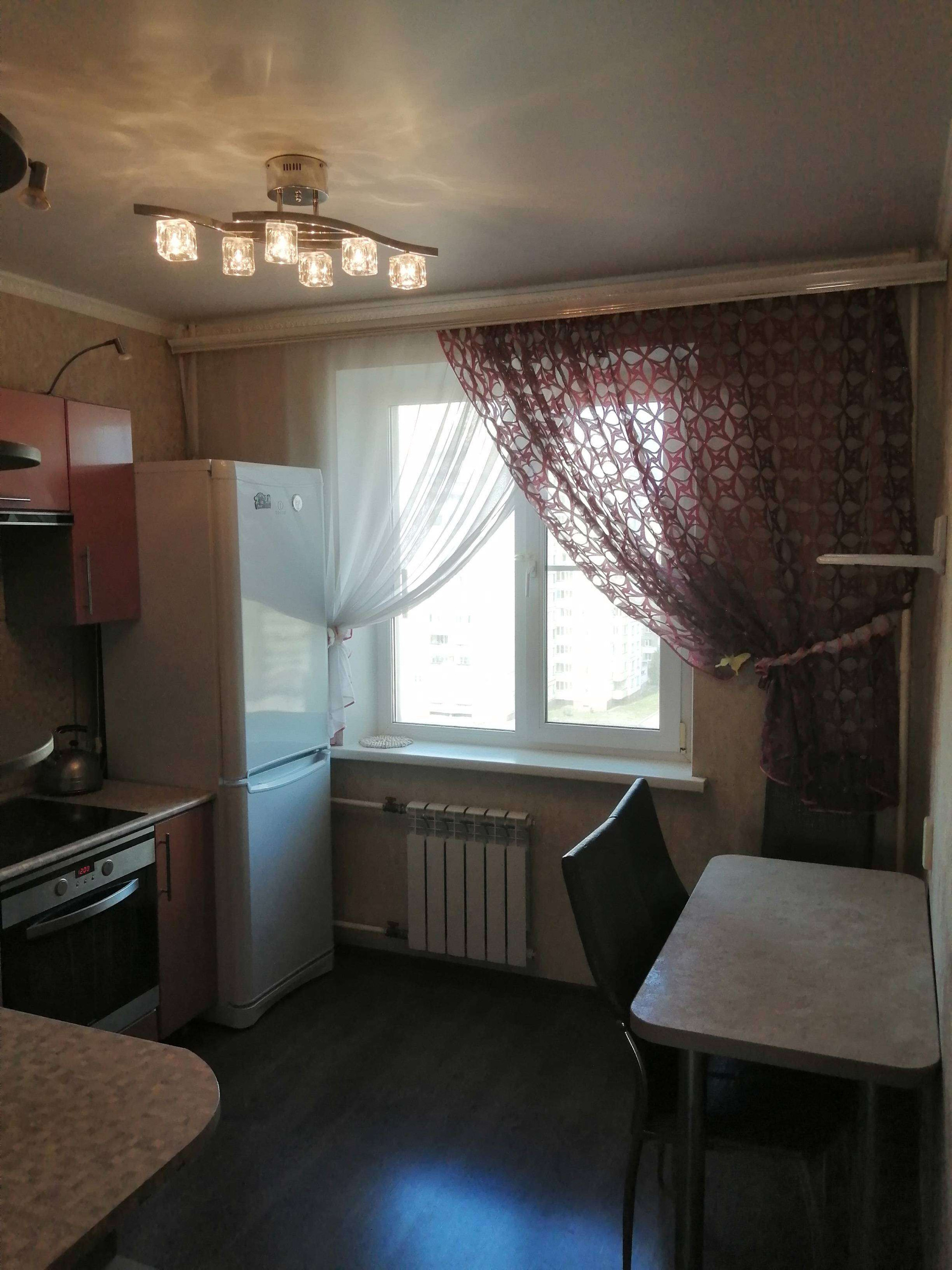 В квартире холодильник, стиральная машина, водогрейка, варочная панель, духовой шкаф и вытяжка.