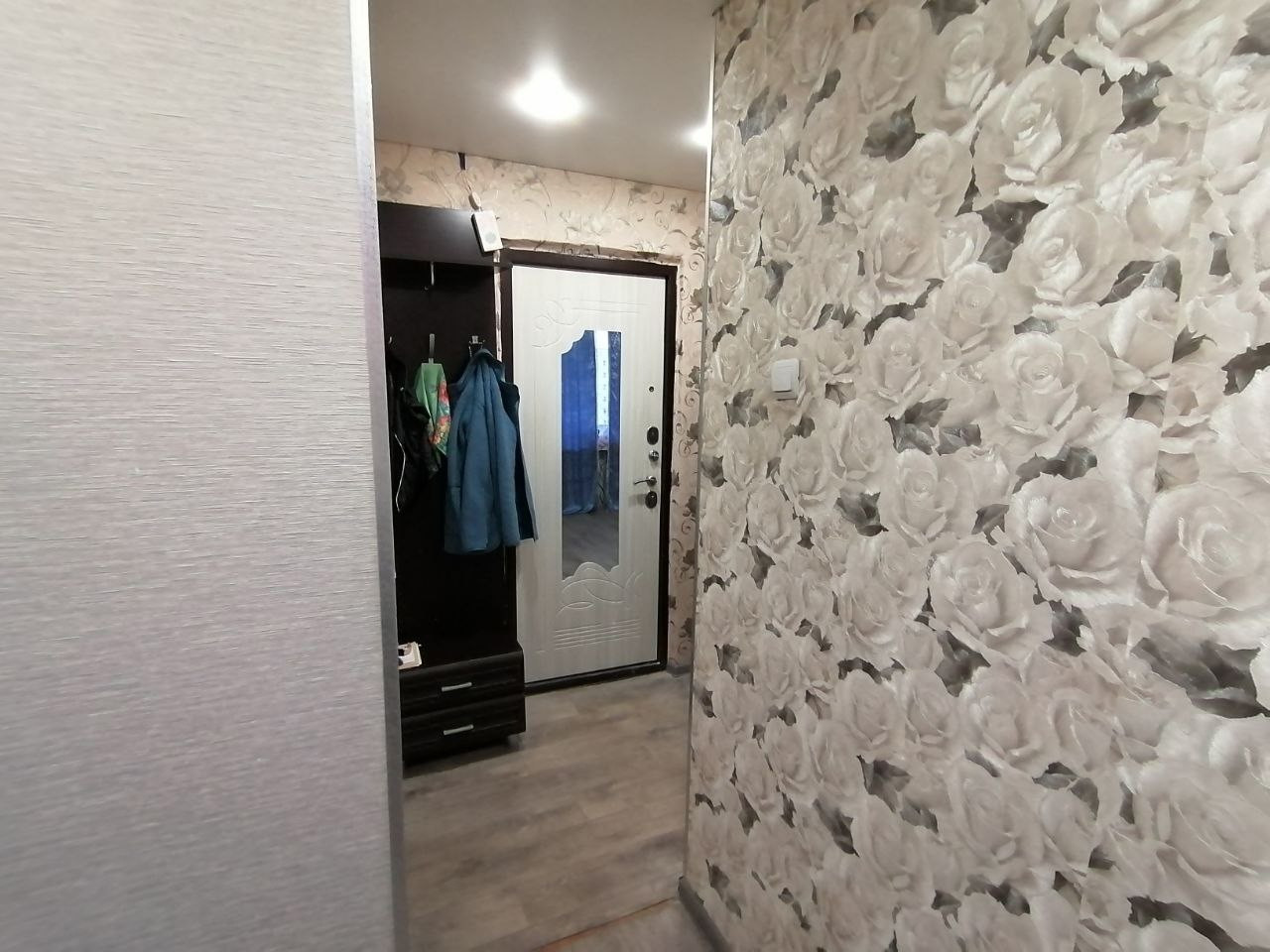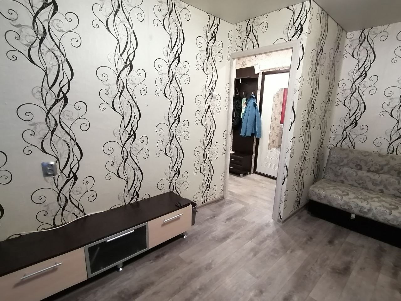В квартире - два дивана, вместительный шкаф, тумба под ТВ, кухонный гарнитур.