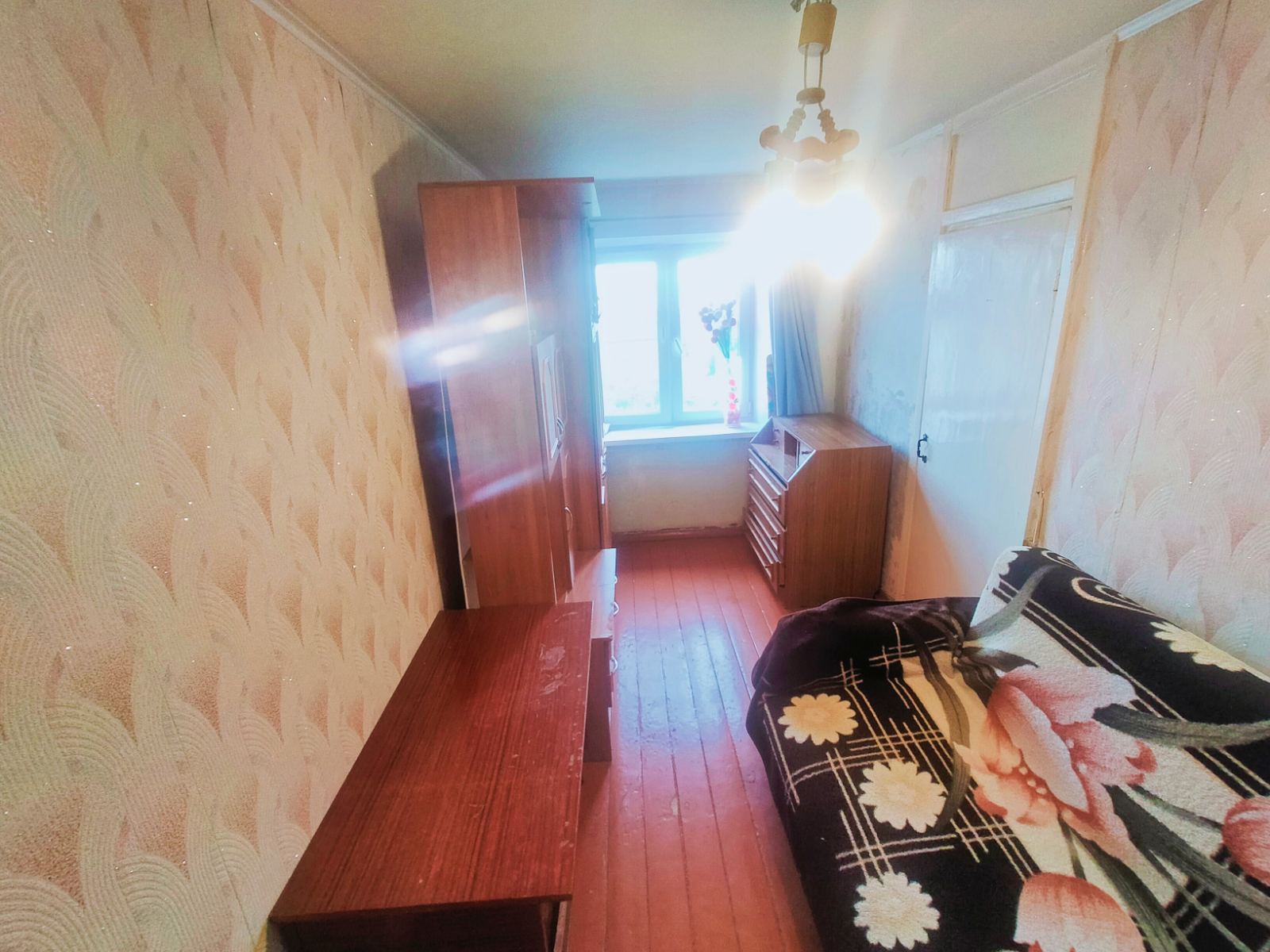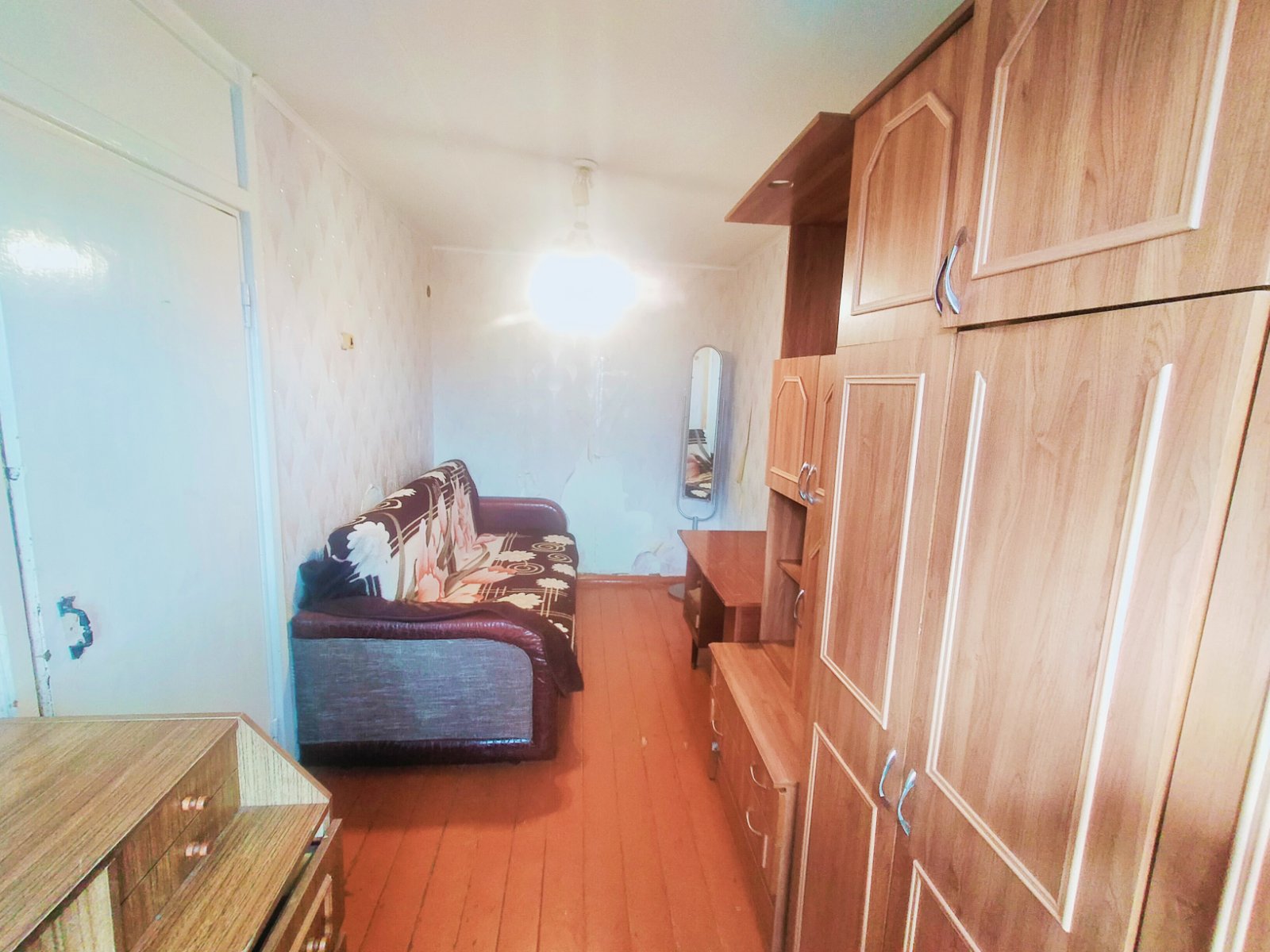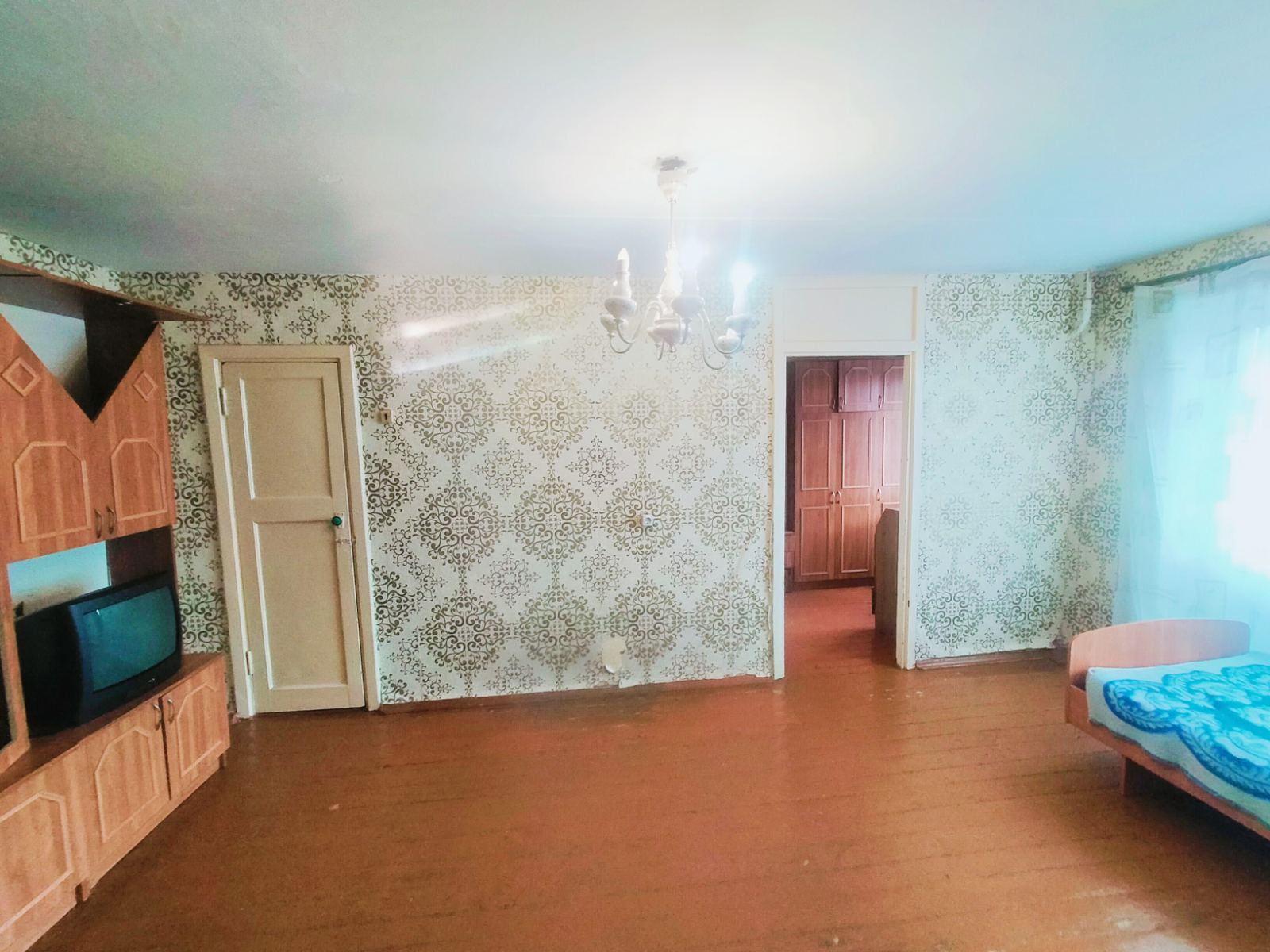 Из мебели есть: диван, кровать, шкаф, стол, стулья, из техники: стиральная машинка, телевизор, холодильник.