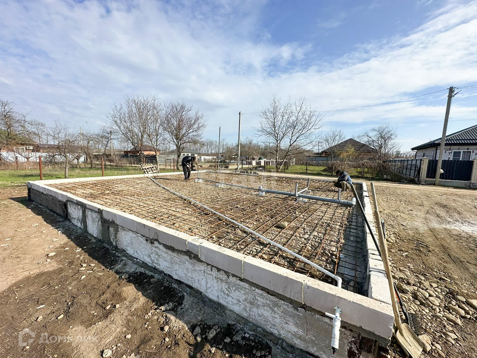 Забор. Септик на 4 кольца. Можно посмотреть уже готовые дома.