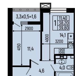 Общая площадь 39.8 м2
