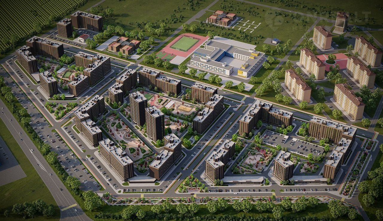 Жилой квартал органично вписан в существующий ландшафт и формирует новую рекреационную зону — центр притяжения для всего района. В квартале предусмотрены широкие дворы, расположены зеленые зоны и аллеи для прогулок. На территории комплекса установлены зоны для отдыха и общения, многофункциональные спортивные площадки, детские игровые площадки с безопасным покрытием, уникальные площадки на стилобате, коммерческие помещения. Для владельцев автомобилей предусмотрен отдельный многоуровневый паркинг.