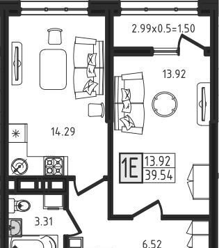 Общая площадь 38 м2