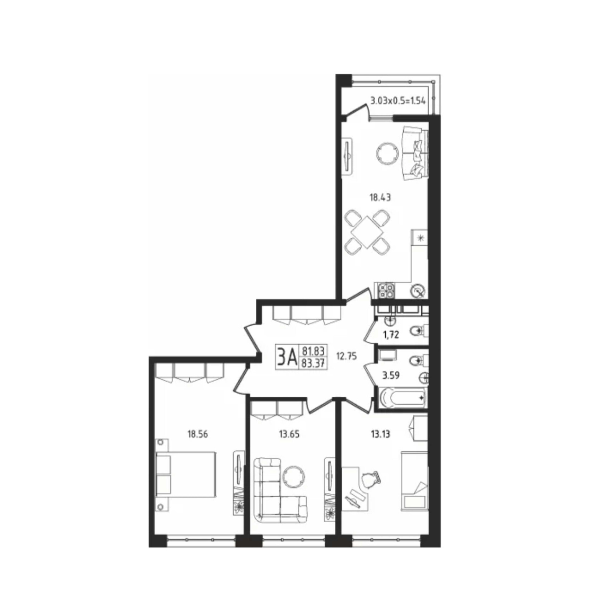 Общая площадь 83.35 м2