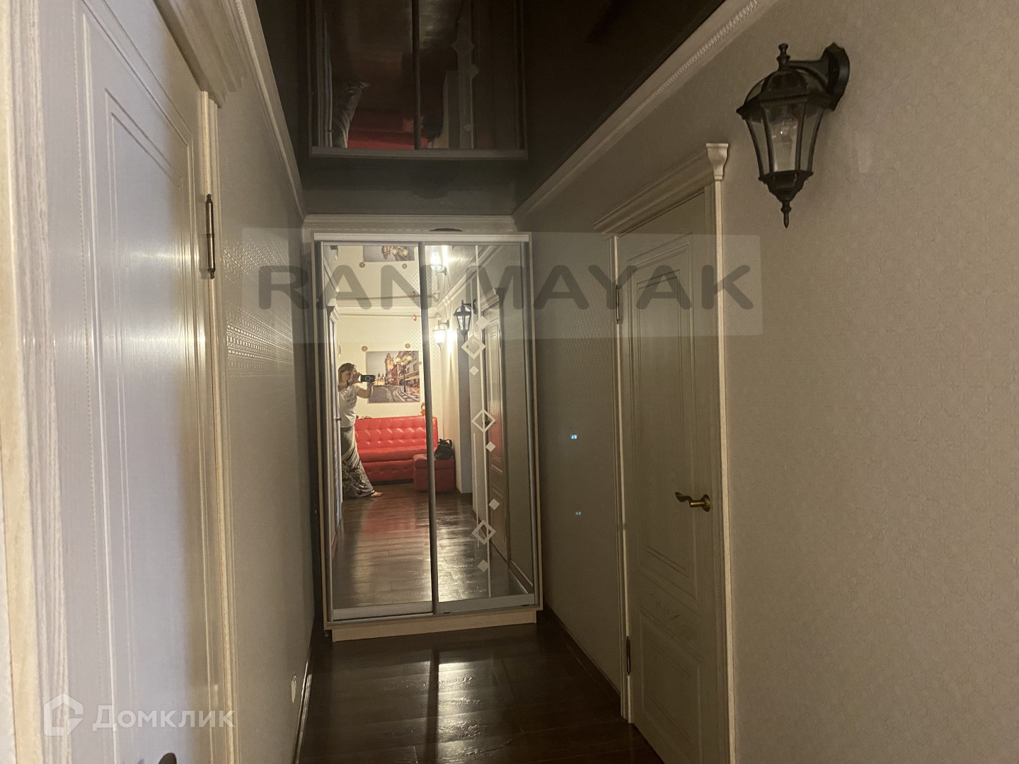 Просторный коридор,в котором зеркальный шкаф-купе.