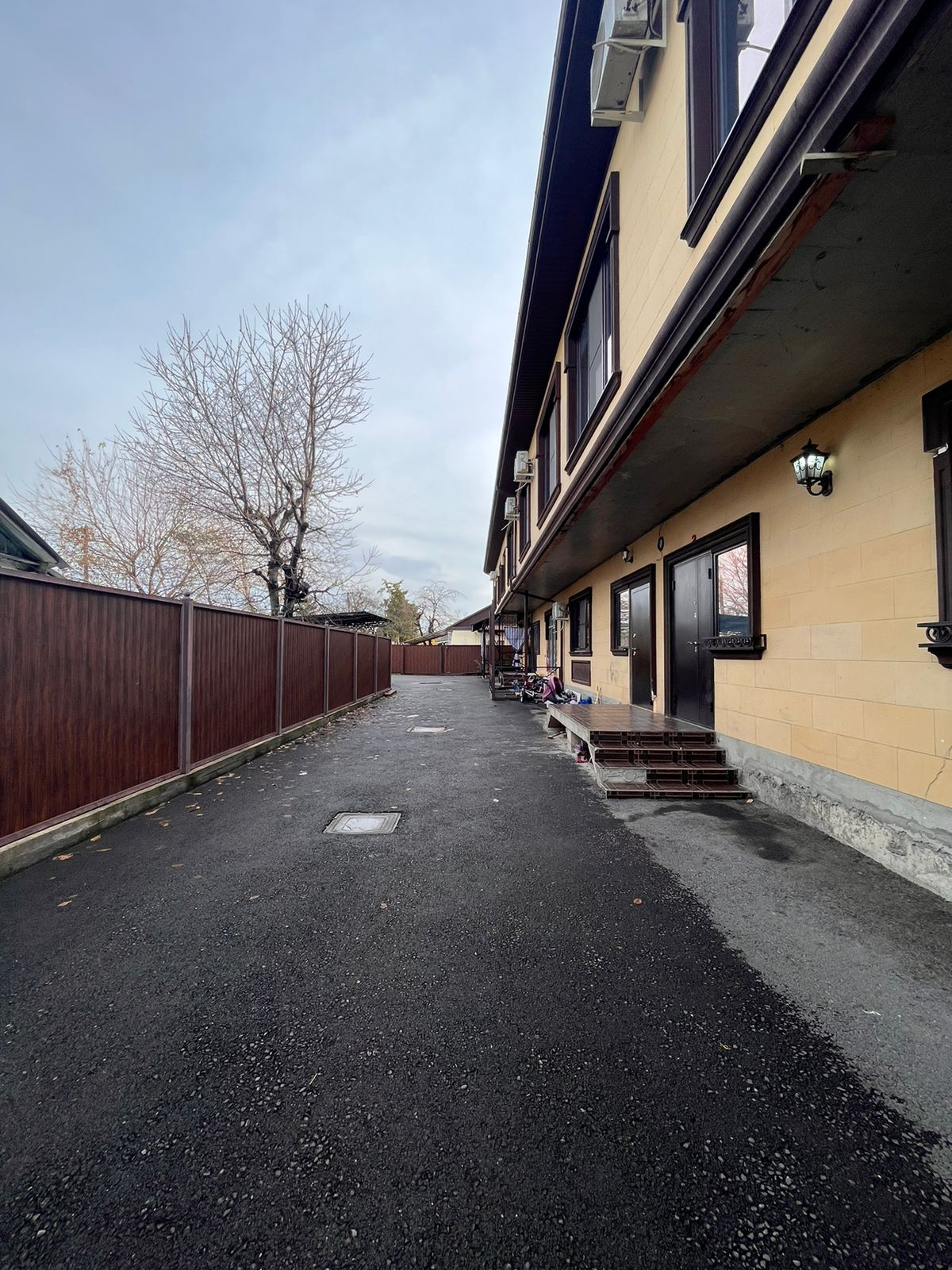 Таунхаус расположен в жилом районе, где есть общий двор с видеонаблюдением, закрытой территорией. Двор подходит для отдыха и проведения времени с соседями. В тоже время, перспективное месторасположение в самом центре города предоставляет легкий доступ ко всем основным объектам инфраструктуры, включая магазины, школы, рестораны и места семейного отдыха.