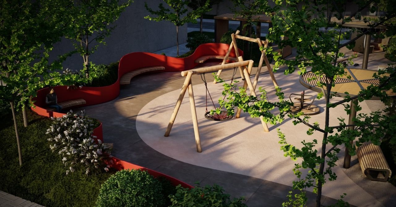 Аллея, кафе и магазины находятся на территории квартала. Неподалеку от жилых домов будет возводиться православный храм.