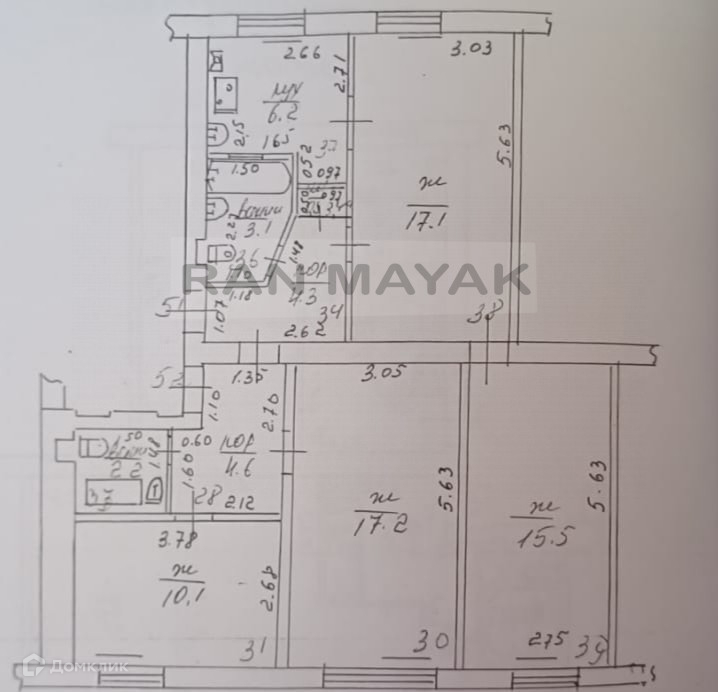 Арт. 55572668 Продаются две объединенные квартиры общей площадью 81,6 кв.м., в центре города Майкопа.
