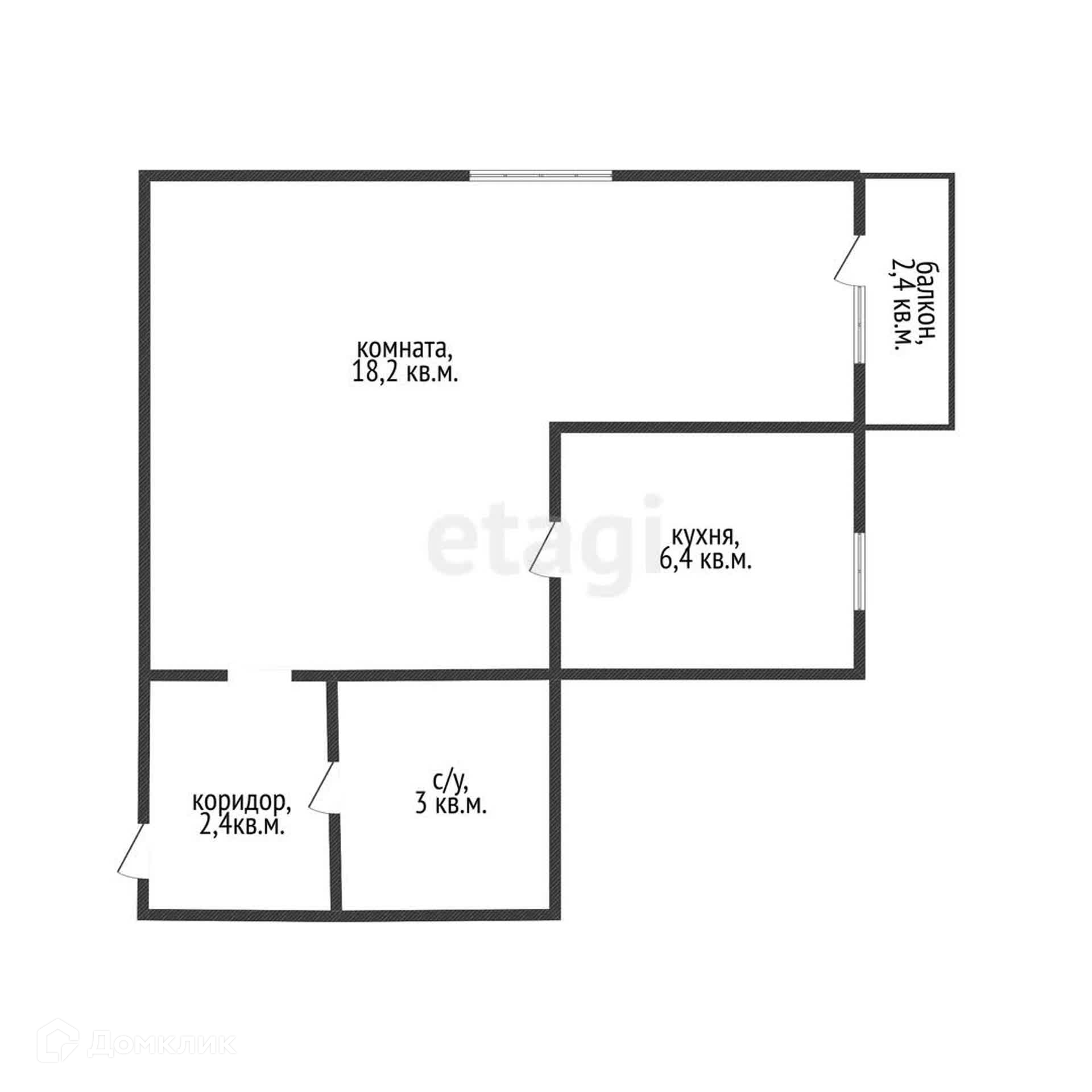 Общая площадь 32.4 м2