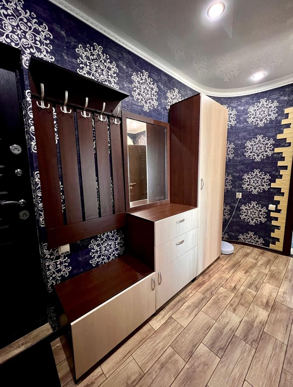 Коридор: тумба для обуви, вешалка для вещей, домофон.
