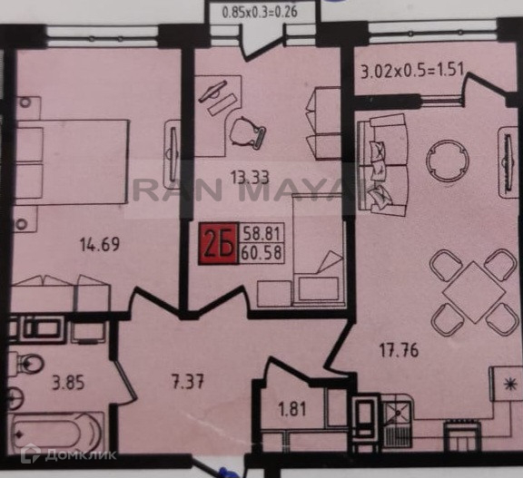 Санузел совмещен. Есть помещение под гардеробную.