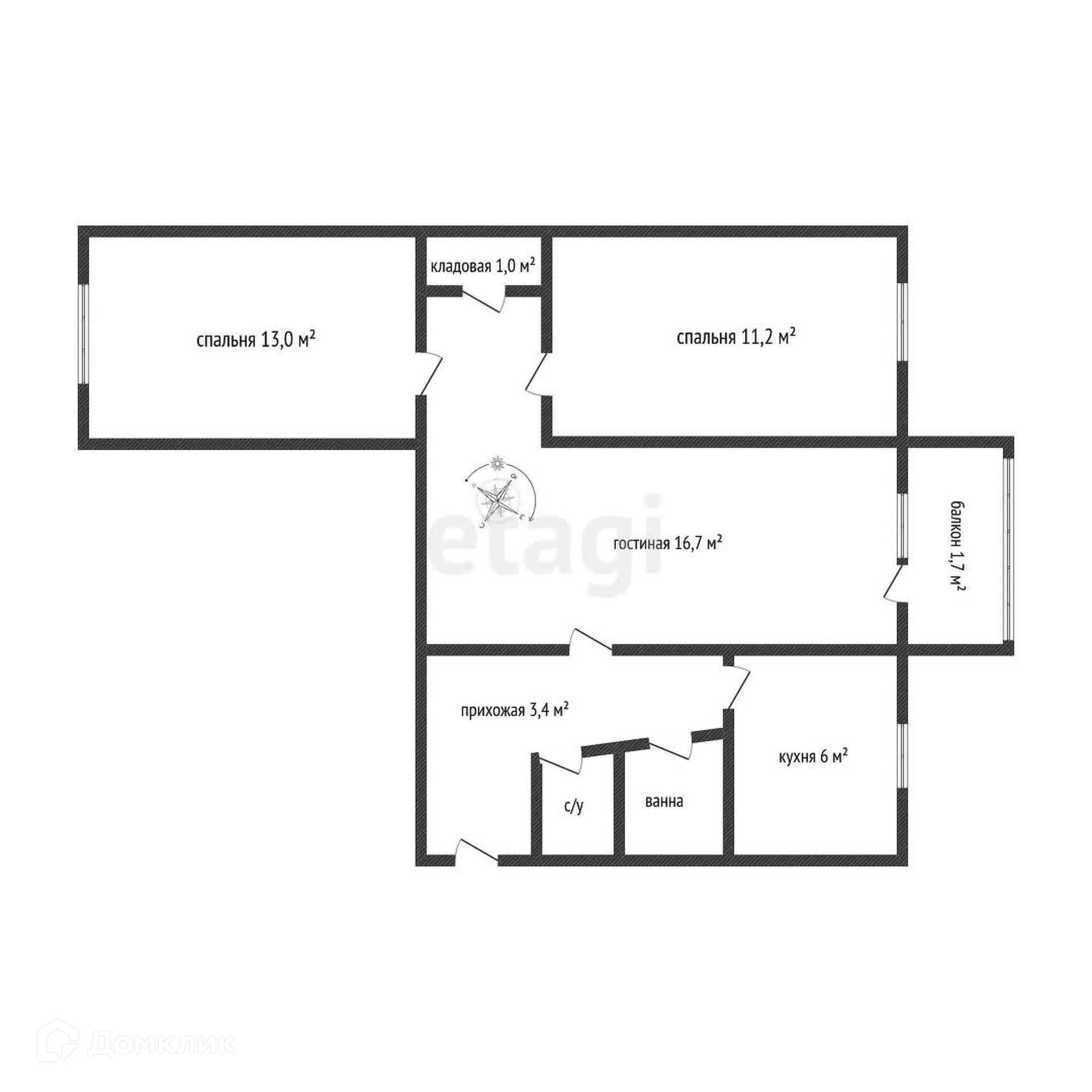 Общая площадь 55.7 м2