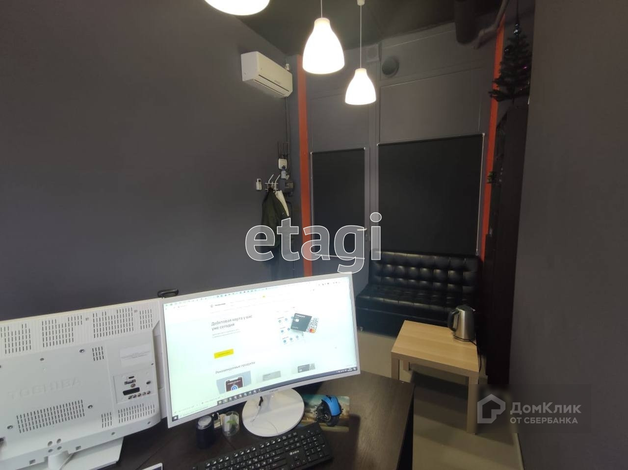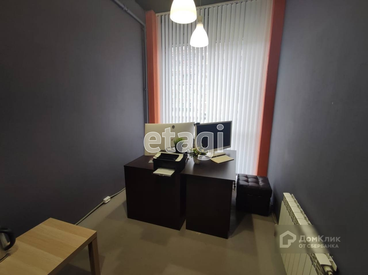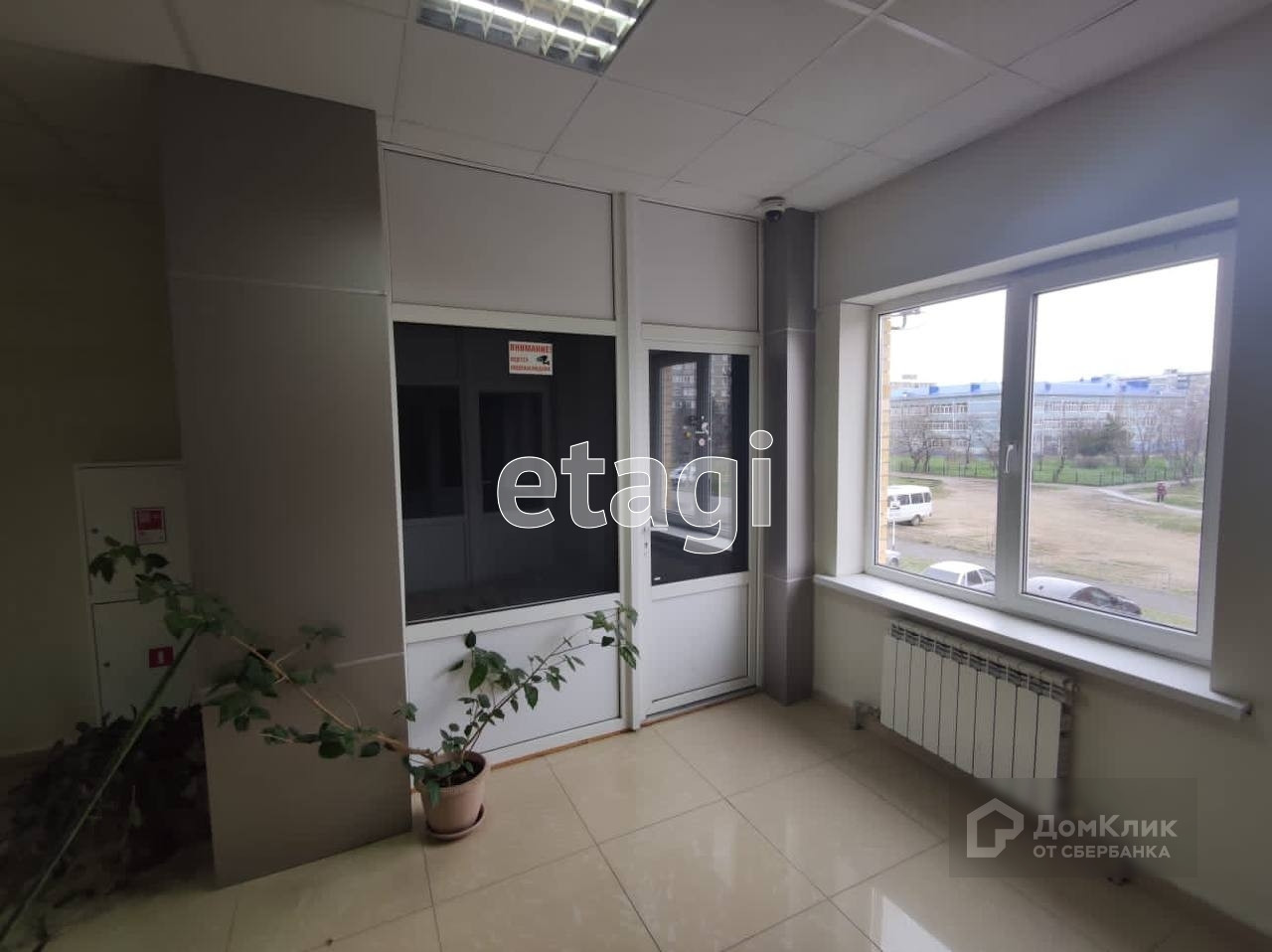 Помещение угловое. Два отопительных радиатора. Над витражом, без проблем, можно повесить рекламный короб обычный или электронный.