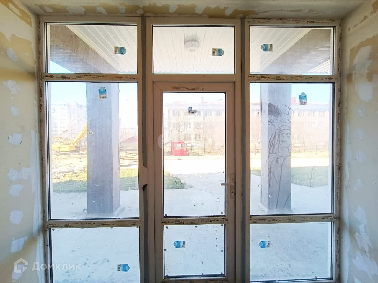 Помещение на два выхода: один выход - во двор дома, другой выход - на школу. Установлены панорамные двери и окна.