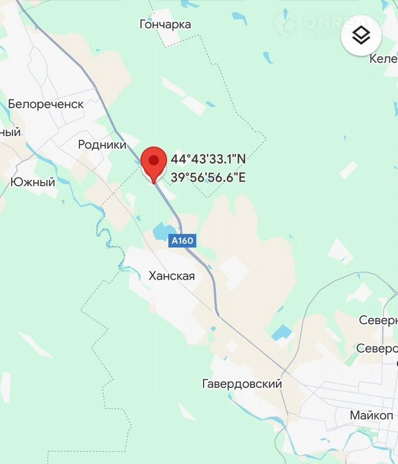 Ориентир на местности: справа по трассе в направлении Усть-Лабинск - Майкоп, 1 км от границы с Белореченском на стороне Адыгеи, адрес: г. Майкоп, СНТ «Лесная Сказка», ул. Дорожная 15-21.
