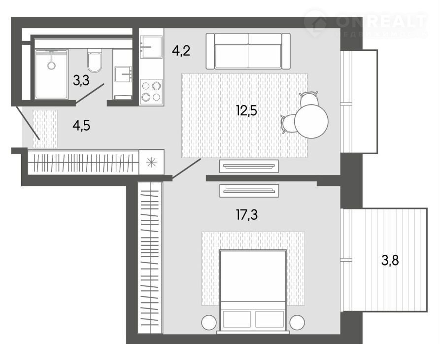 Балкон, лоджия 1 лоджия