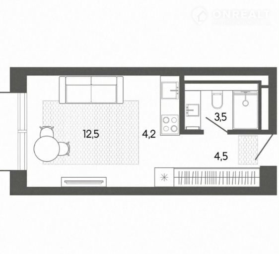 Жилая площадь 12.5 м2