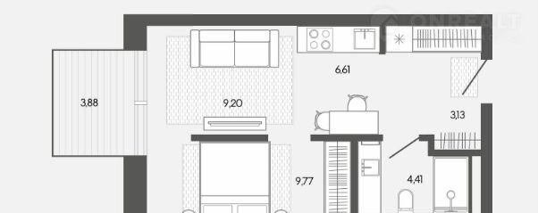 Общая площадь 37 м2