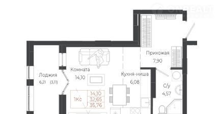 Балкон, лоджия 1 лоджия
