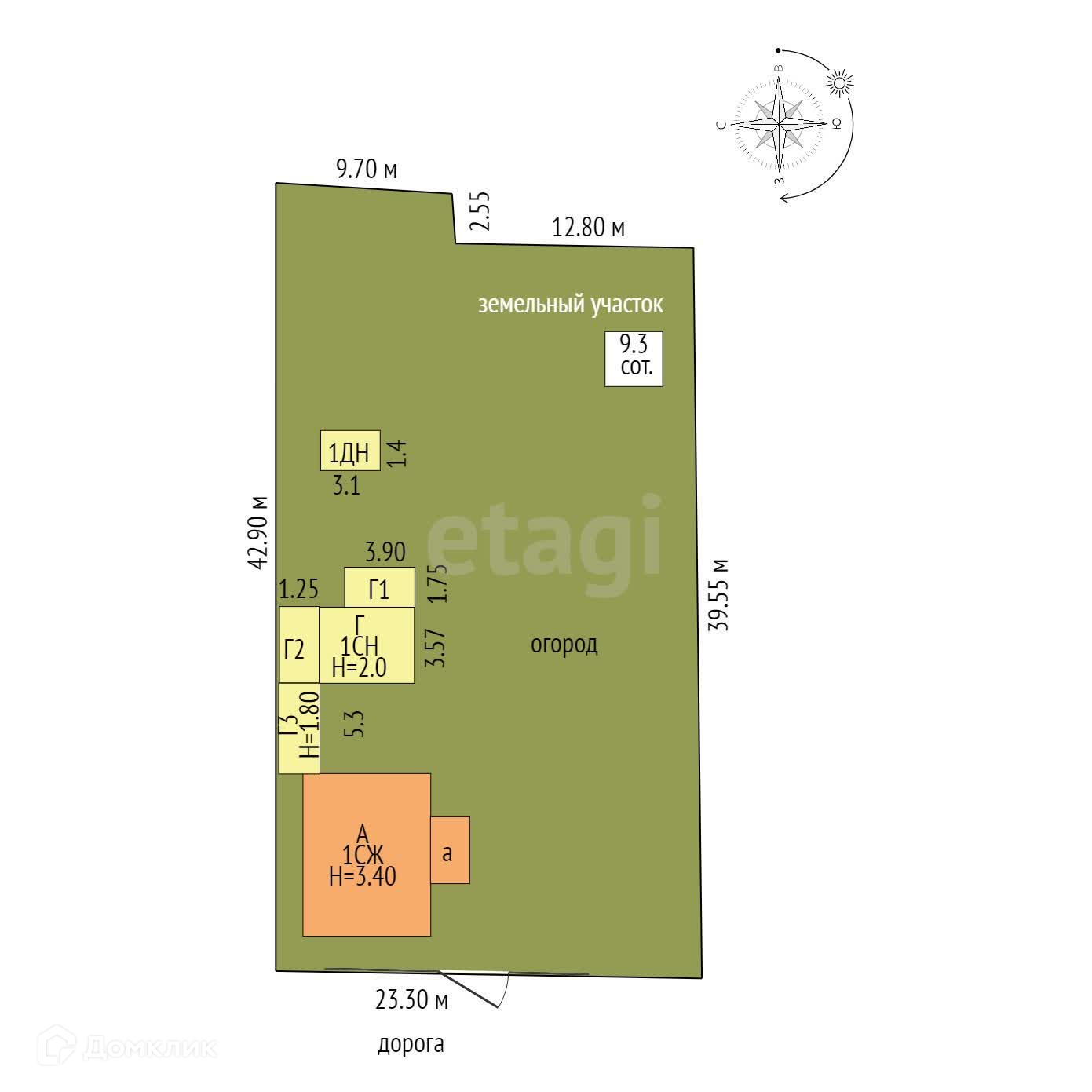 Площадь участка 9.3 сот.