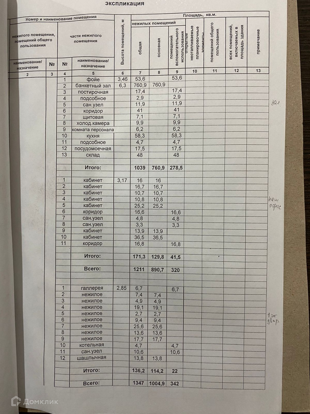 Общая площадь чуть больше 1000 м2.