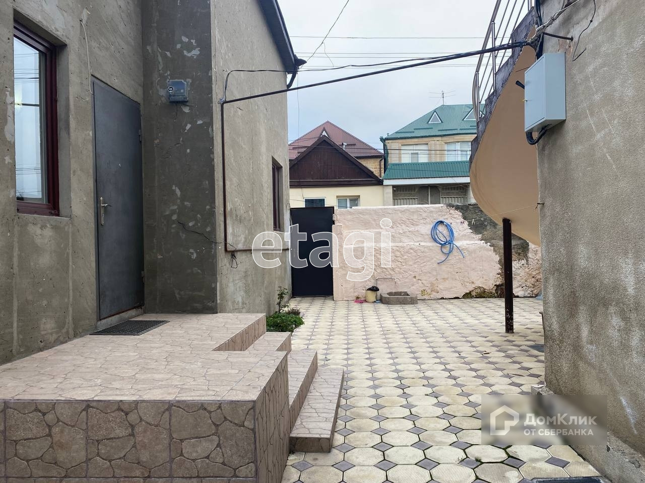 Закрытый общий двор с двумя хорошими соседями. В доме проведены все коммуникации газ, вода, свет, канализация.