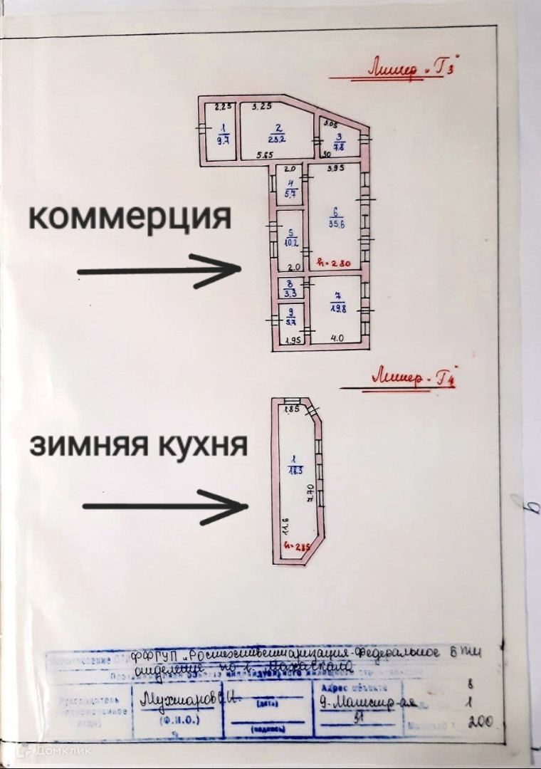 Общая площадь дома 187,3 м2, зимней кухни = 18,3 м2, коммерческих помещений = 109,3 м2, участка = 4,41 сотки