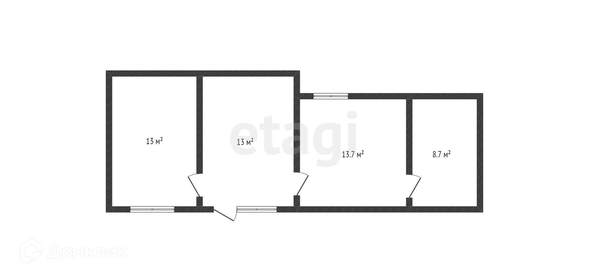 2 комнаты, кухня и кладовая.