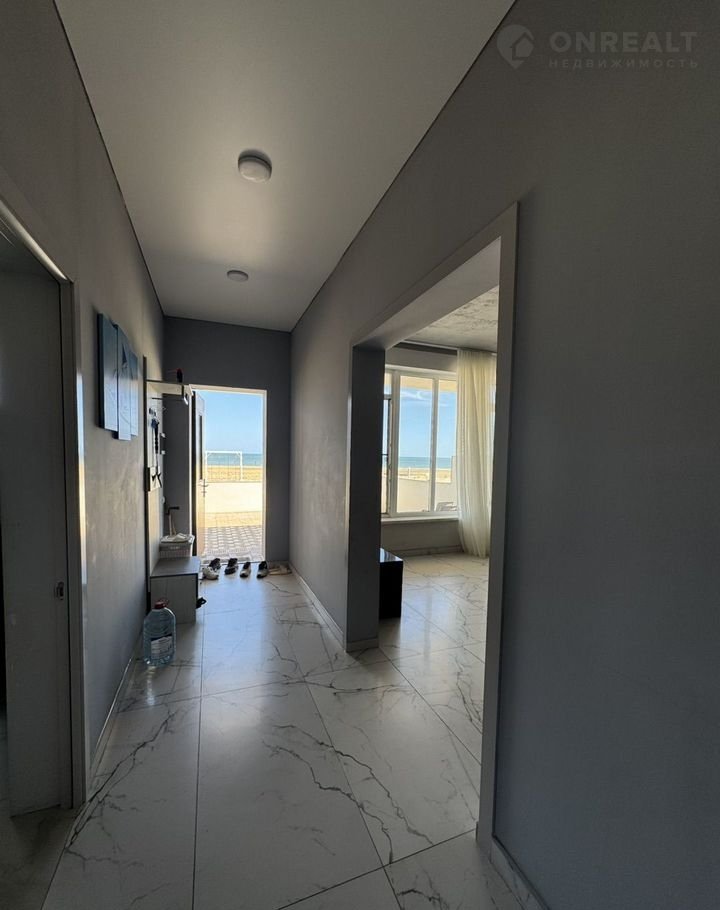 На первом этаже вас встретит светлая и просторная прихожая, а слева — зал, совмещенный с кухней, откуда открывается великолепный вид на море. Все необходимое для комфортной жизни — техника и мебель — уже включены в стоимость.