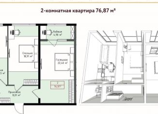 Продается 1-комнатная квартира, 77 м2, улица Даганова, 139